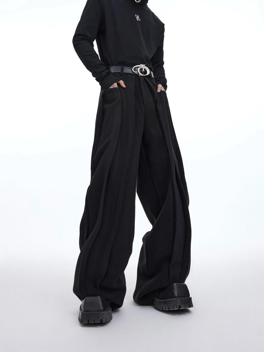 Minimalist Pleated Woolen Casual Pants with Loose Drape and Versatile Style