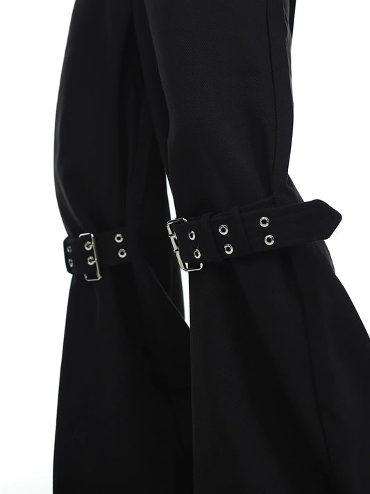 Deconstructed Cinched Woolen Coat | Metallic Buckle Long Overcoat