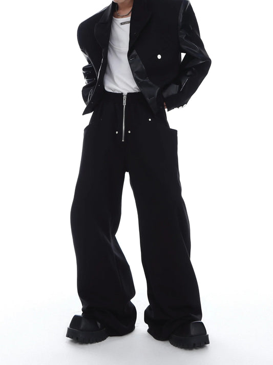 Trendy Metal Zipper Wide-Leg Sweatpants with Versatile Minimalism