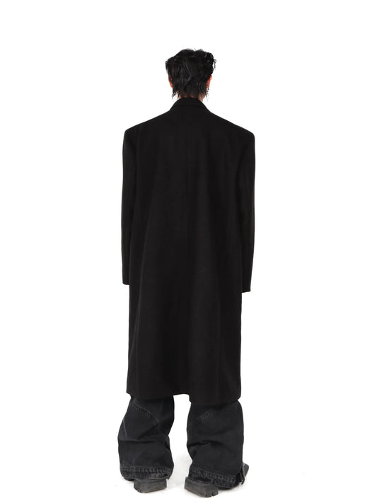 Edgy Structured Shoulder Woolen Overcoat | Minimalist Longline Trench