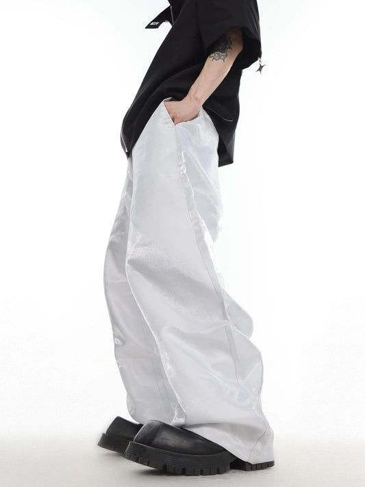 Unisex Avant-Garde Metallic Sheen Wide-Leg Pants with High Waist