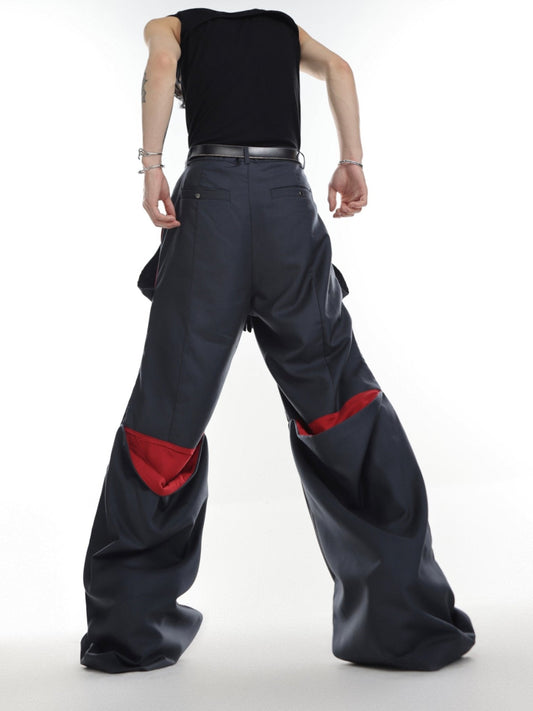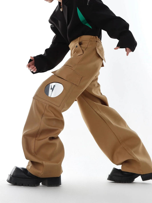 Versatile Wide-Leg Cargo Pants with Mirror Panel Patchwork