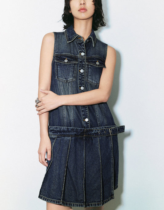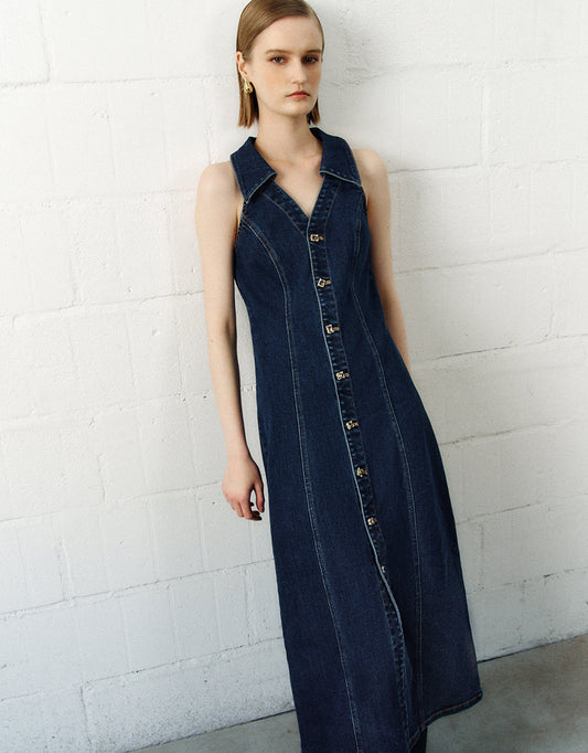 Sleeveless Lapel Denim Dress