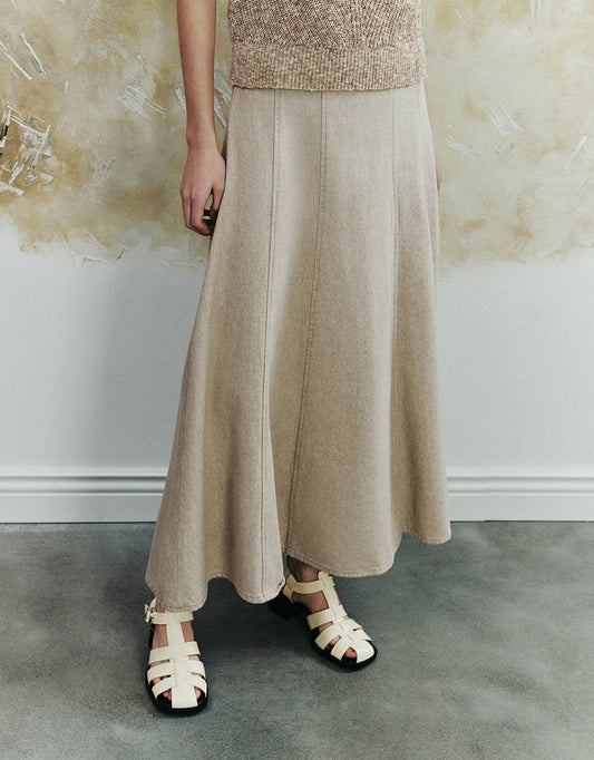 Midi A-Line Denim Skirt