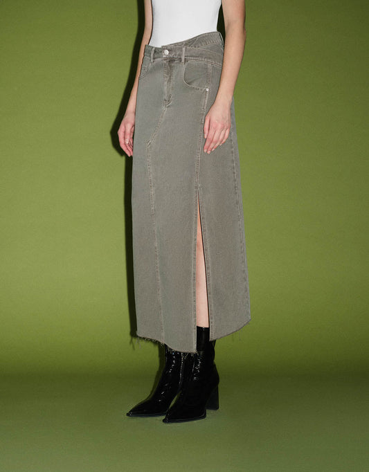 Split Hem Midi A-Line Denim Skirt