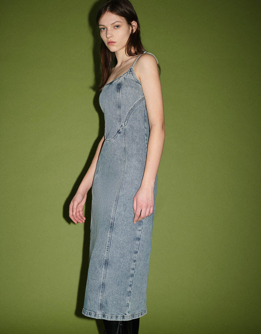 U Neck Skinny Denim Cami Dress