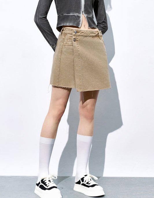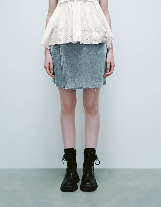 Raw Hem Mini A-Line Denim Skirt