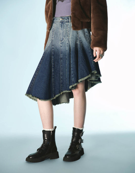 Gradient Midi Fishtail Denim Skirt