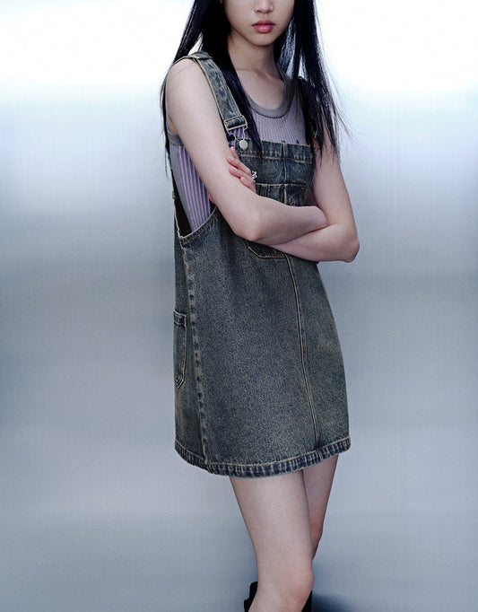 Mini Denim Pinafore Dress