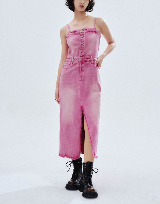 Raw Hem Off-Shoulder Denim Cami Dress
