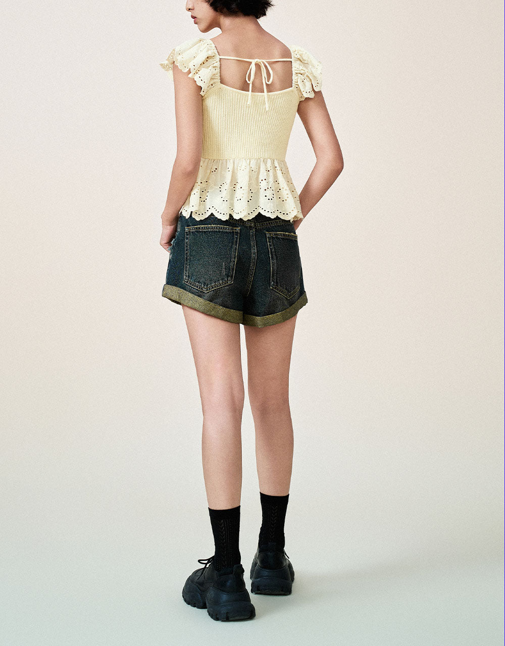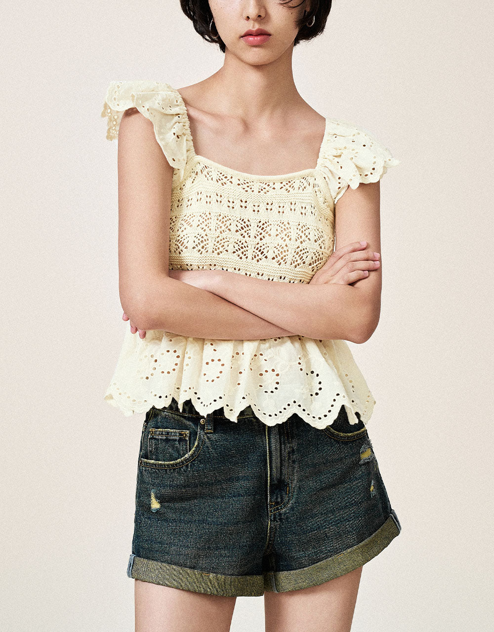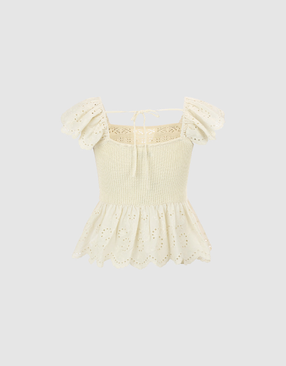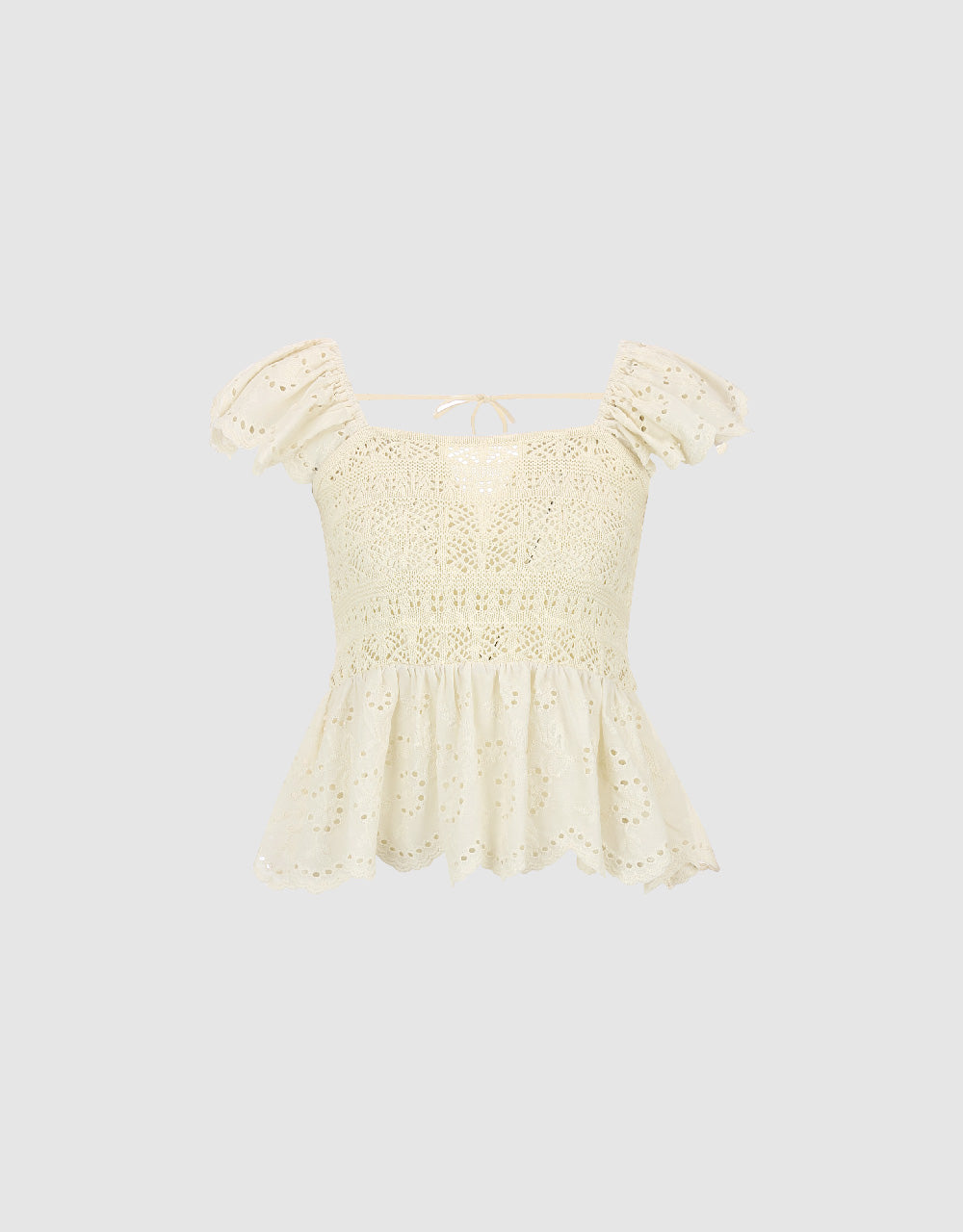 Crochet Square-cut Collar Knitted T-Shirt