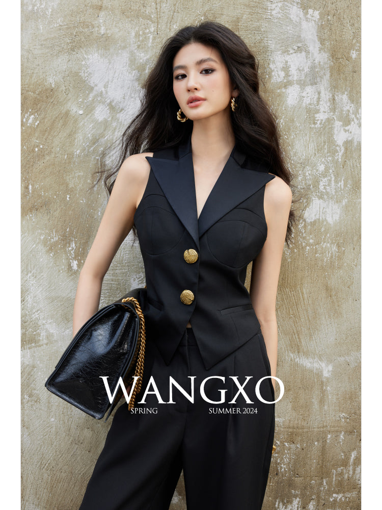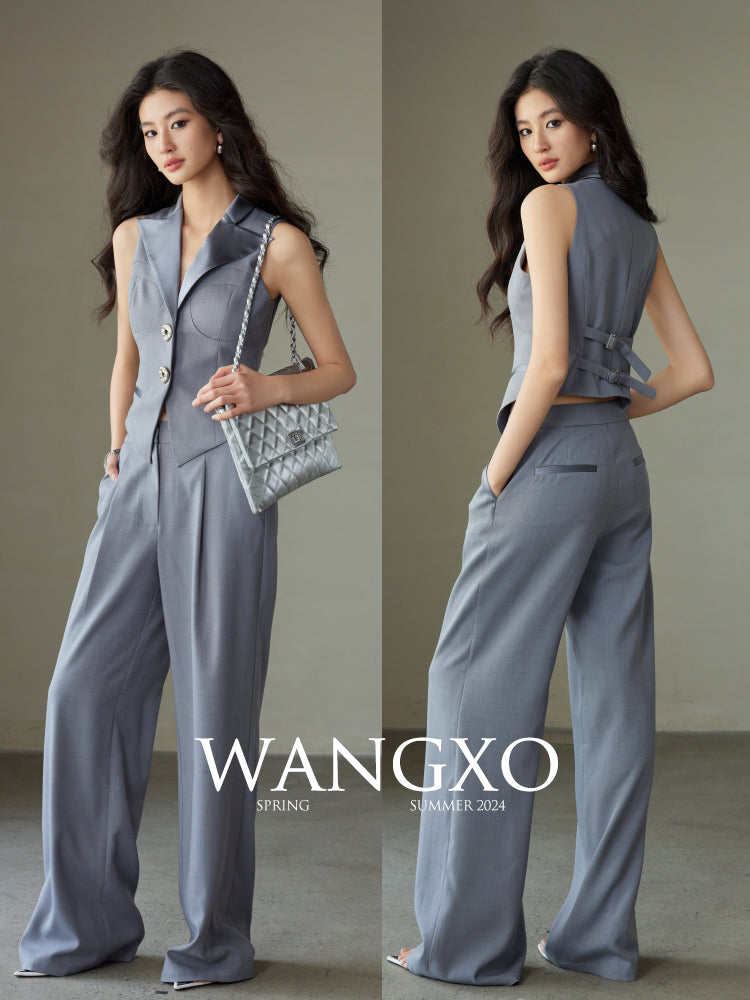 クロップドウエストコート&ワイドレッグスーツパンツセット