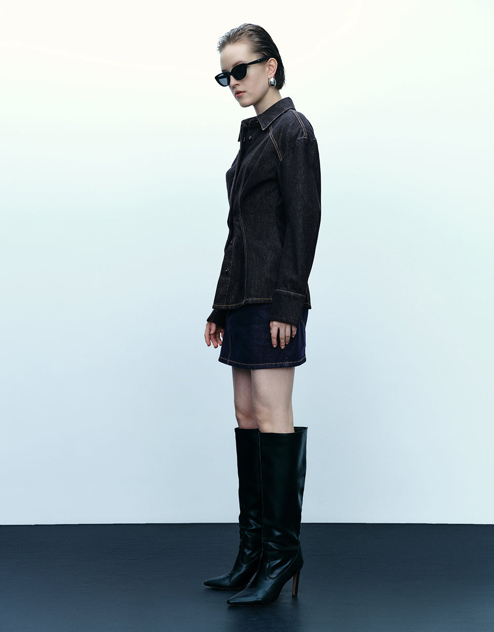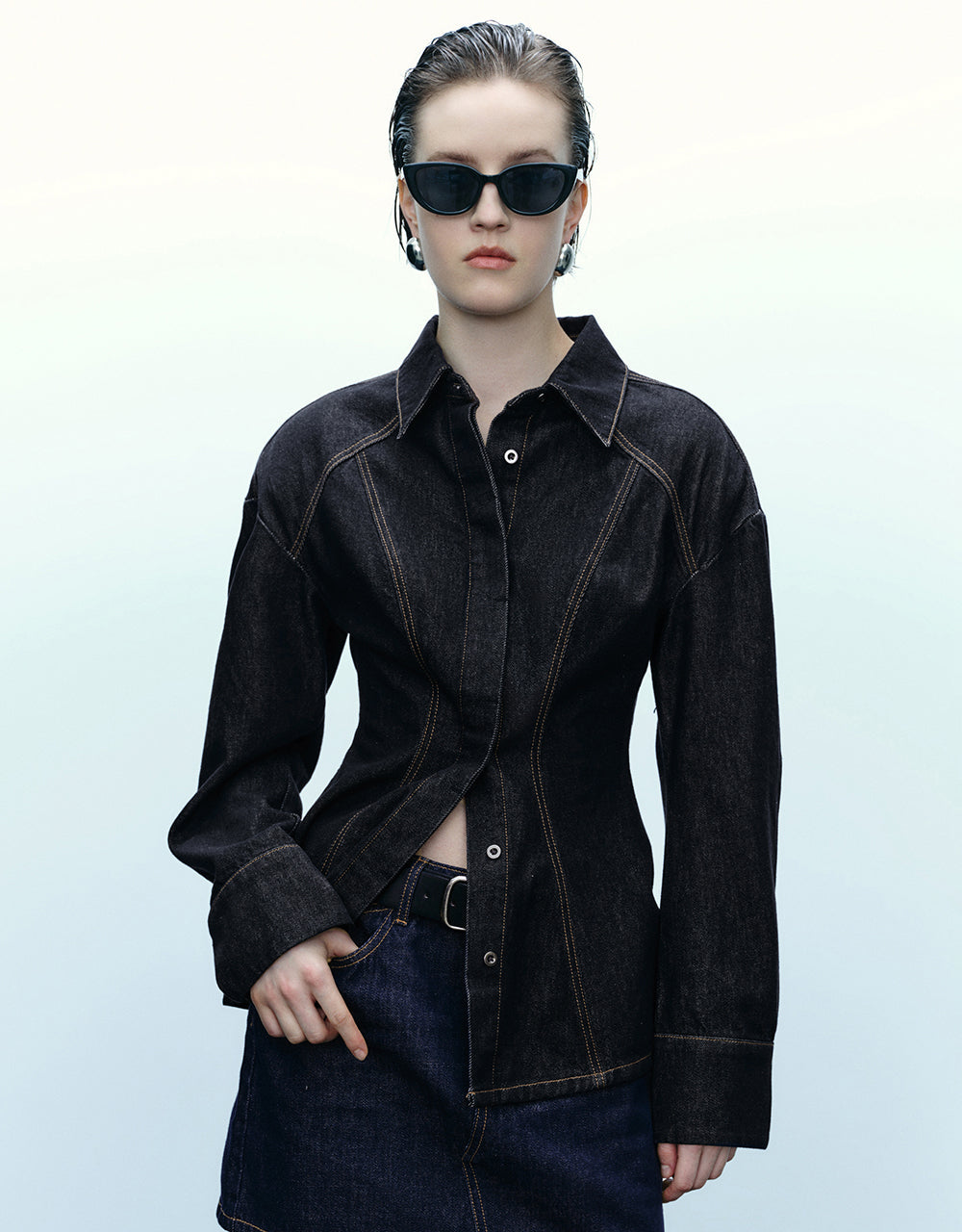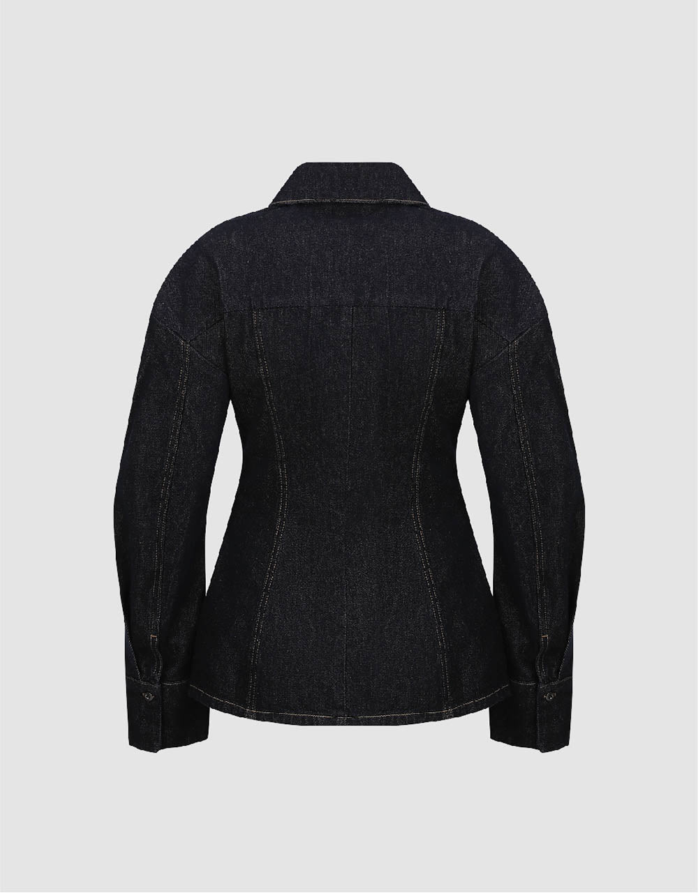Drop Shoulder Sleeve Skinny Denim Shirt