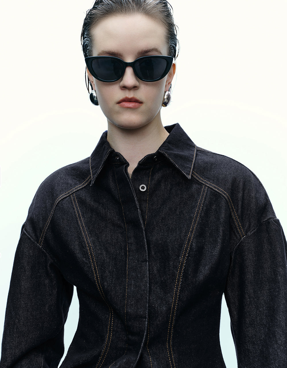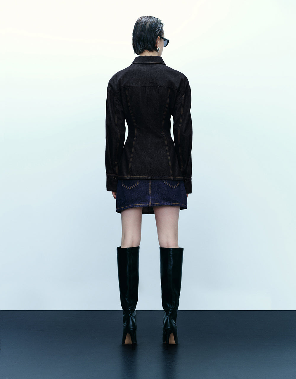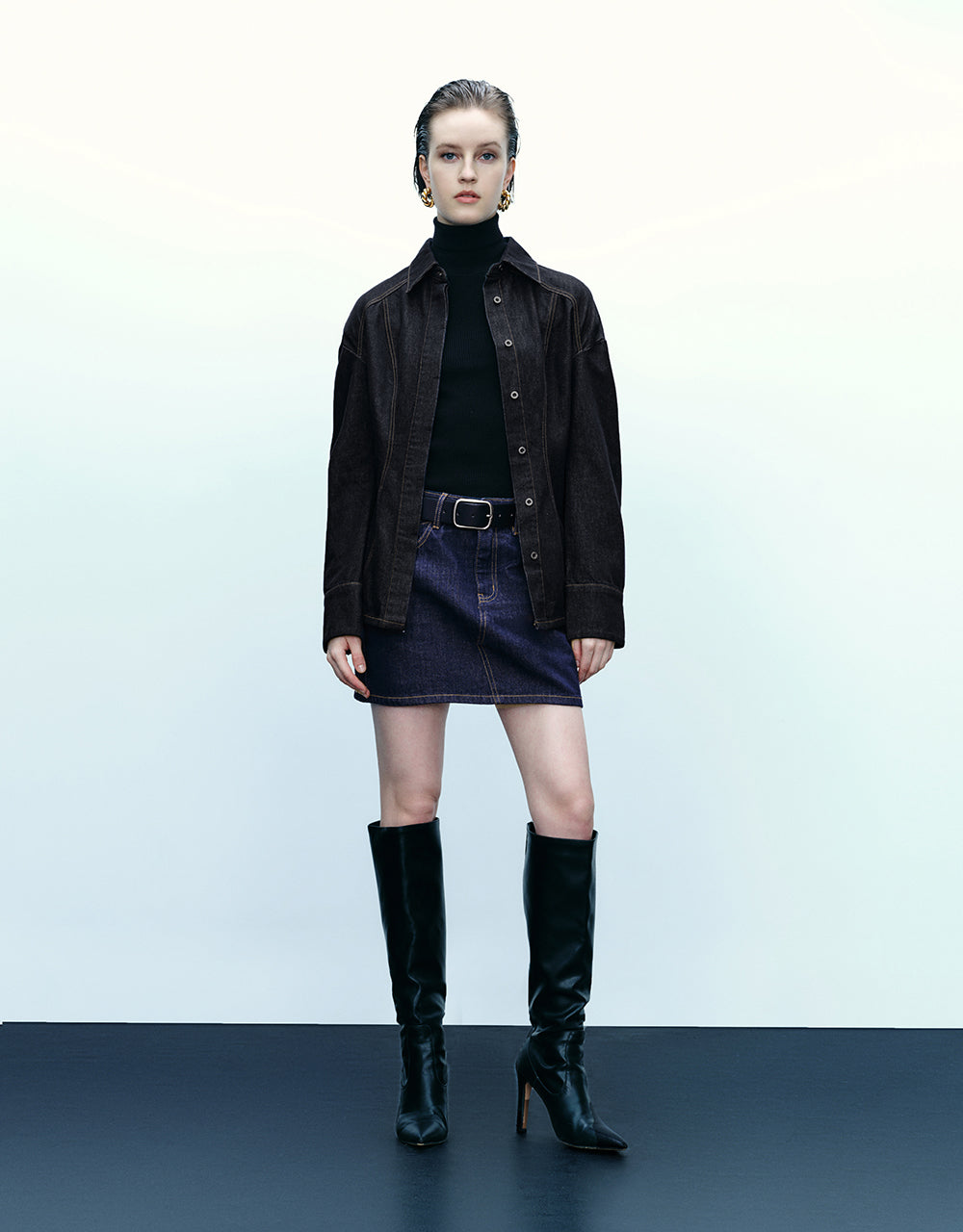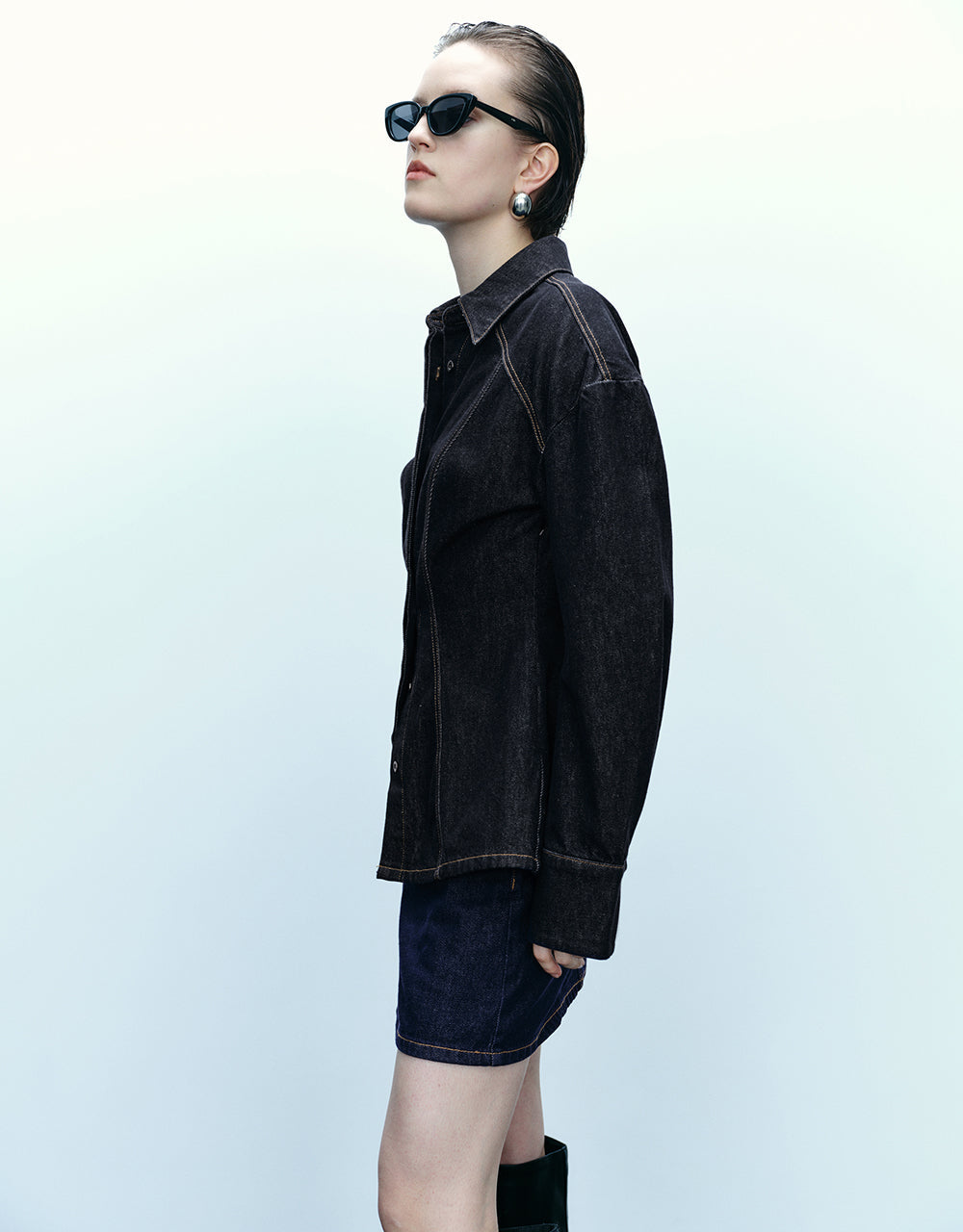 Drop Shoulder Sleeve Skinny Denim Shirt