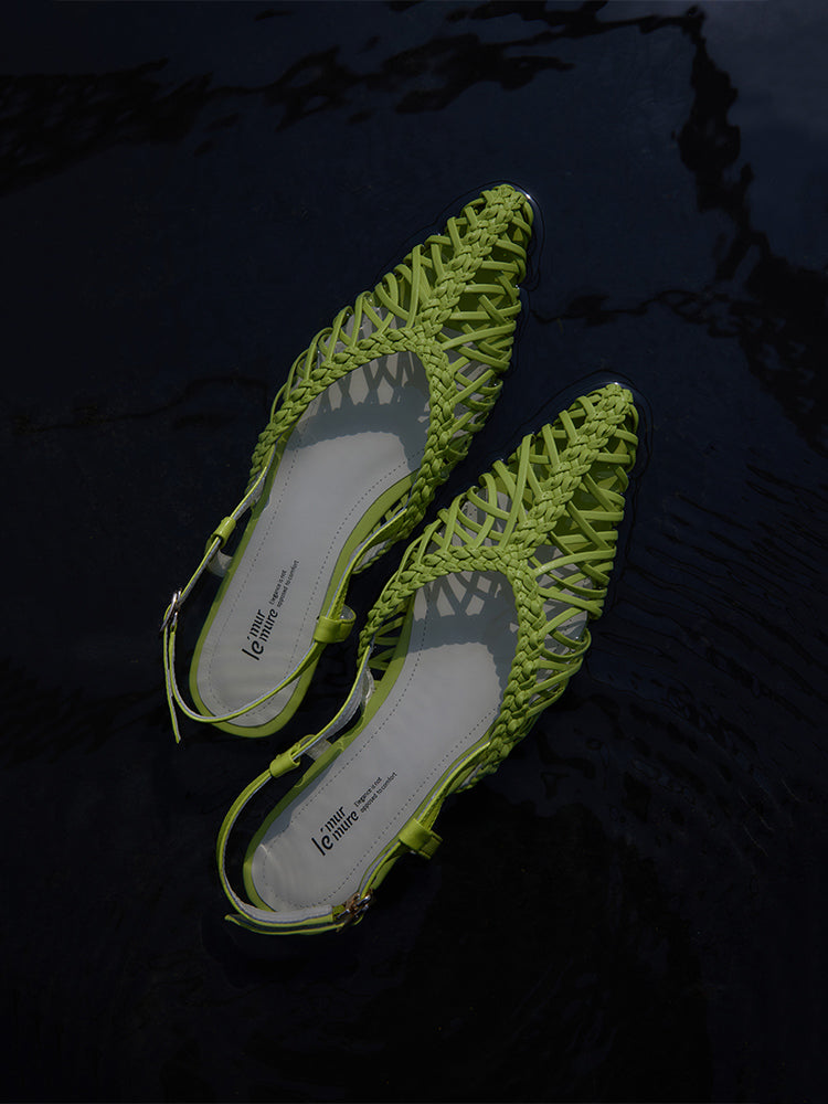 手作りのマルチカラー編み込みポインテッドトゥサンダル