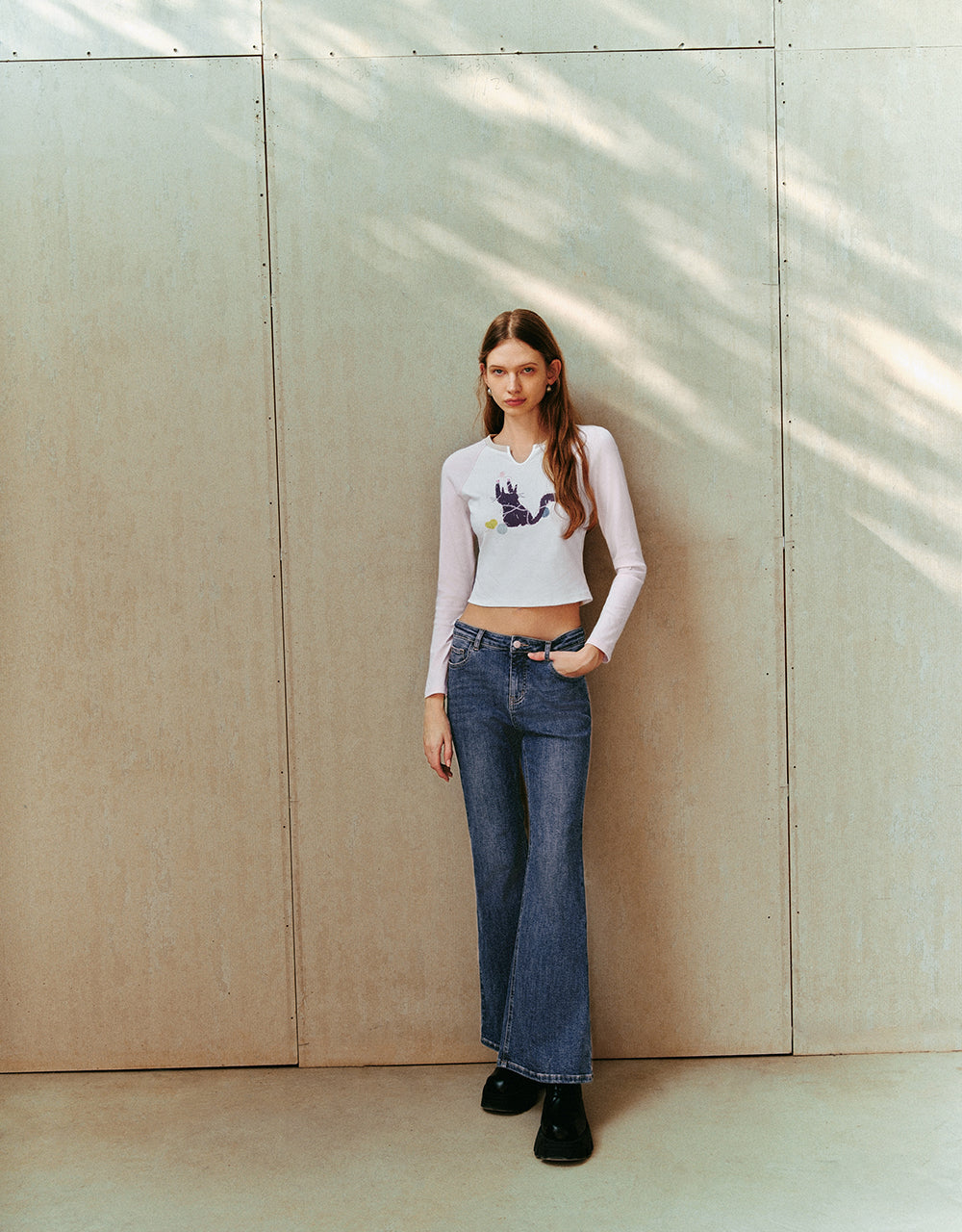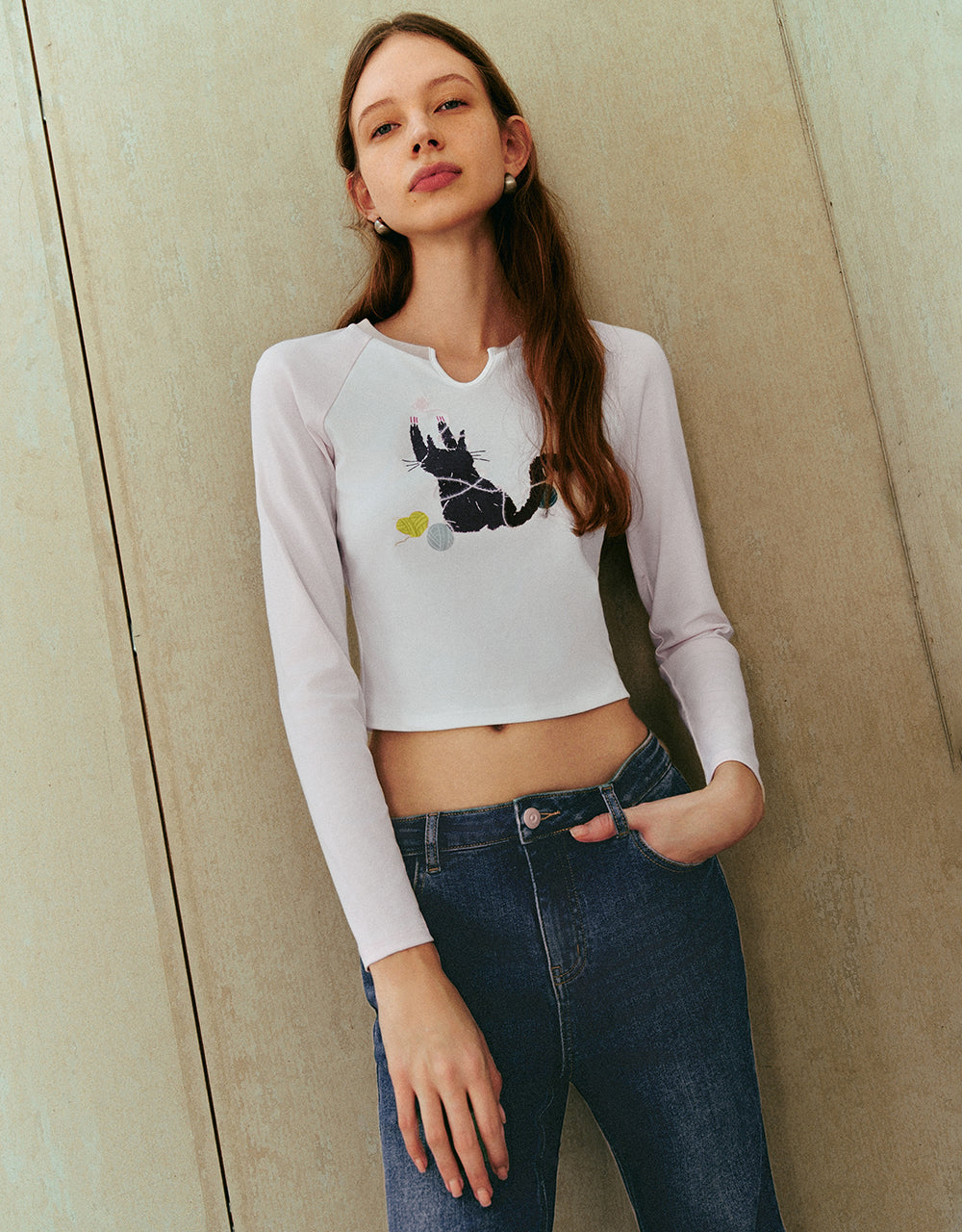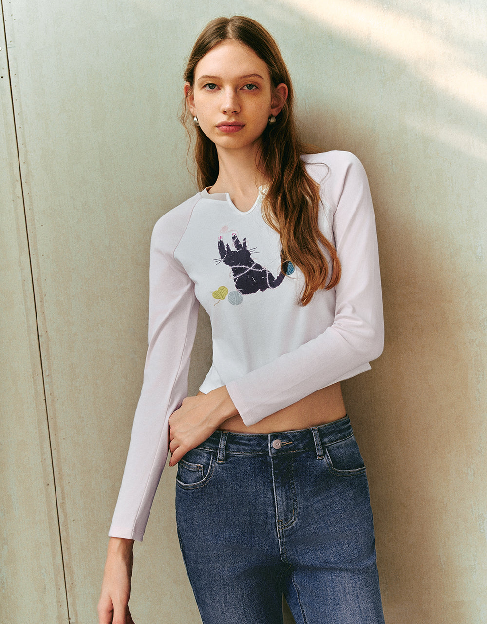 Kitty Printed Raglan Sleeve Skinny T-Shirt