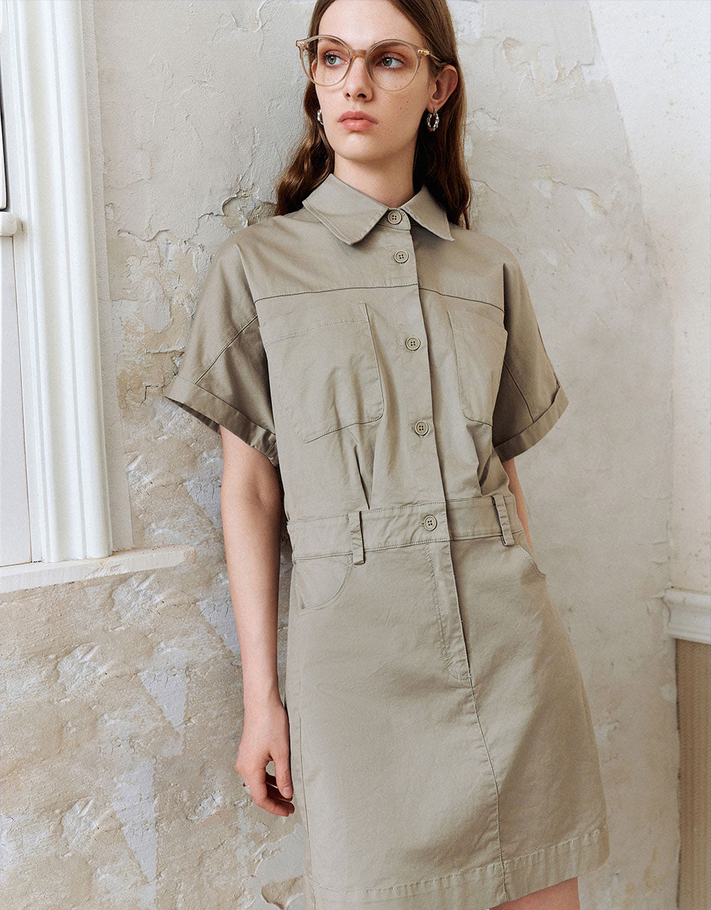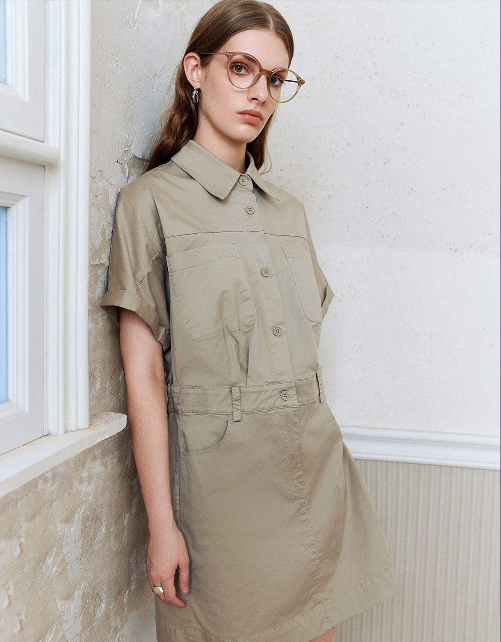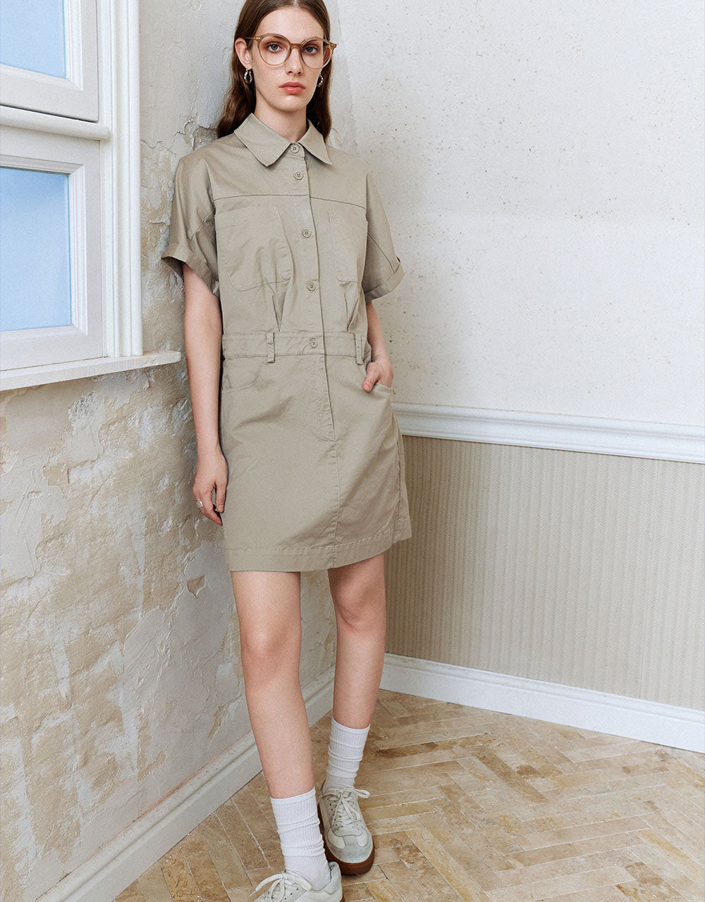Lapel Straight Shirt Dress