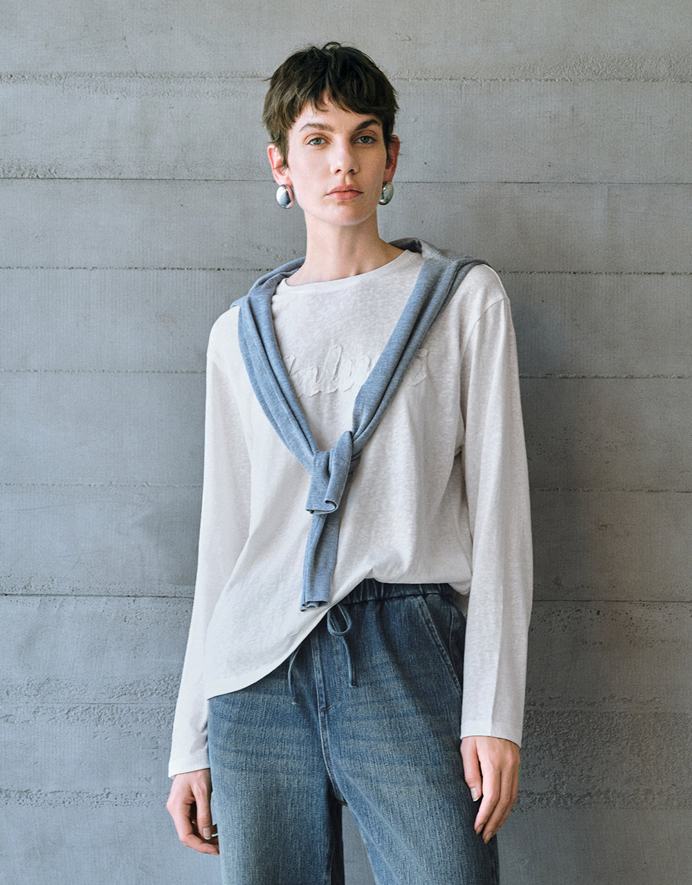 Letter Embossed Crew Neck T-Shirt