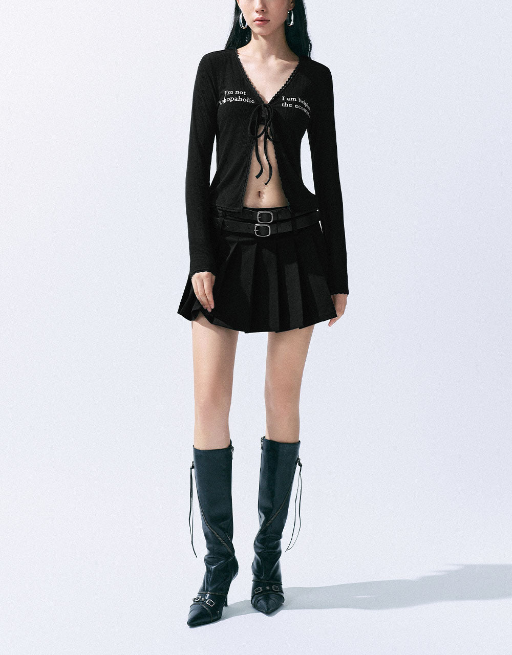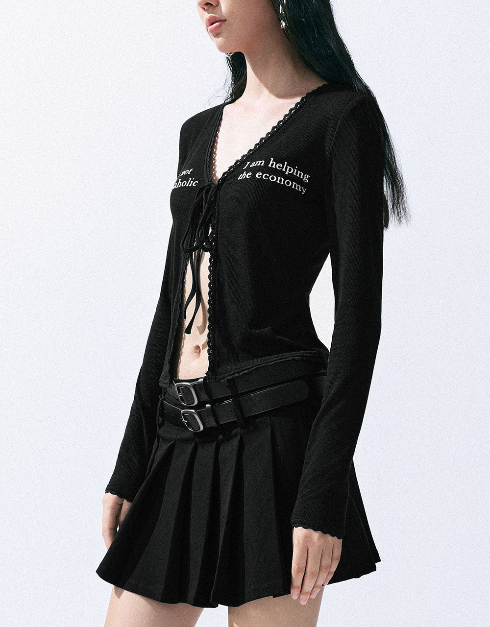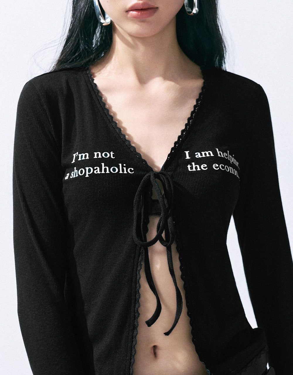 Letter Printed Tie Front Knitted Shirt