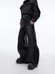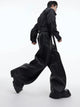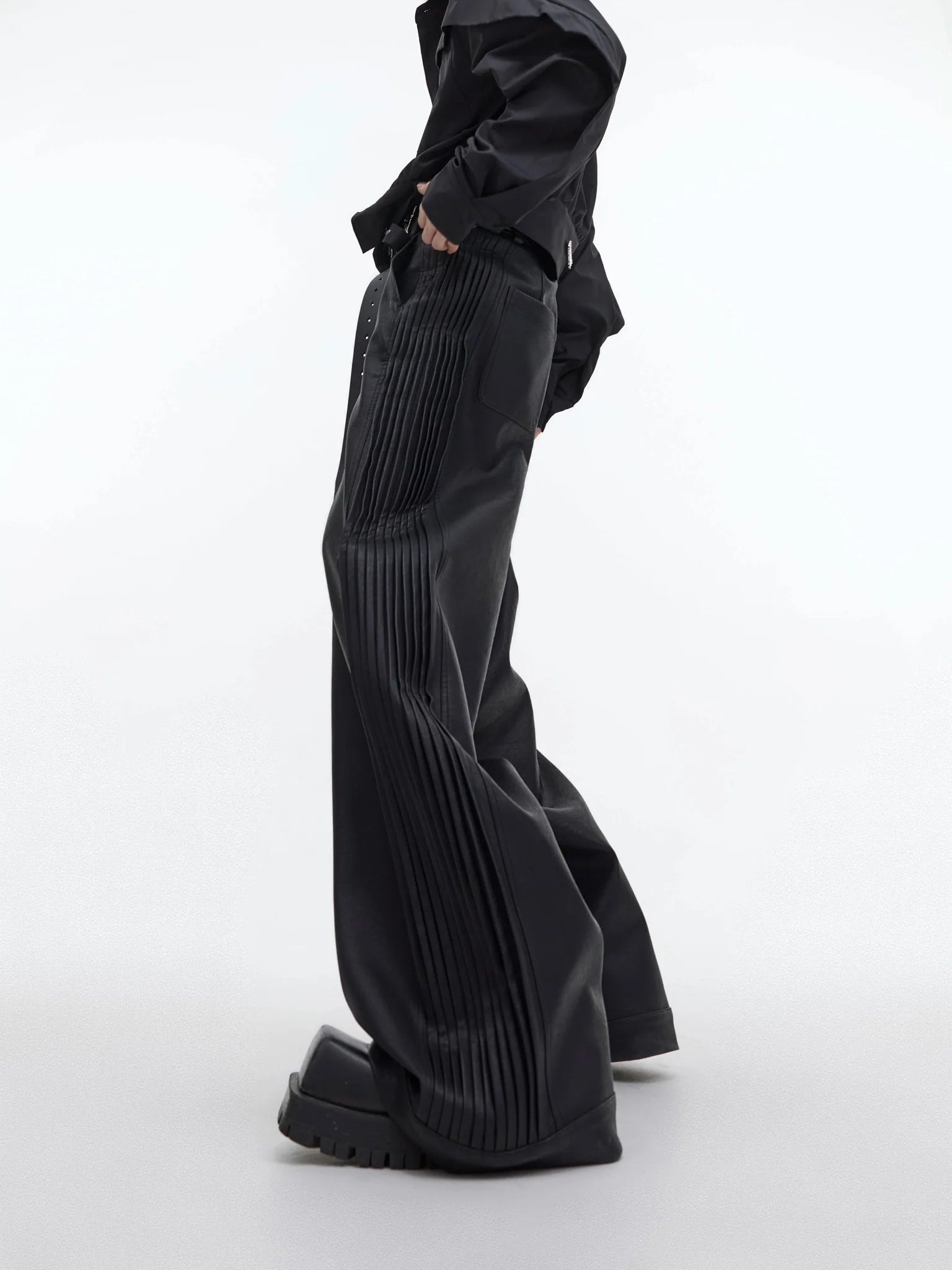 - These trousers are a testament to modern design, blending unique aesthetics with practical comfort. The wide-leg cut and pleated design not only offer a relaxed fit but also cater to a variety of body types, making them a versatile addition to any wardrobe. Available in black, they embody the essence of minimalist chic.