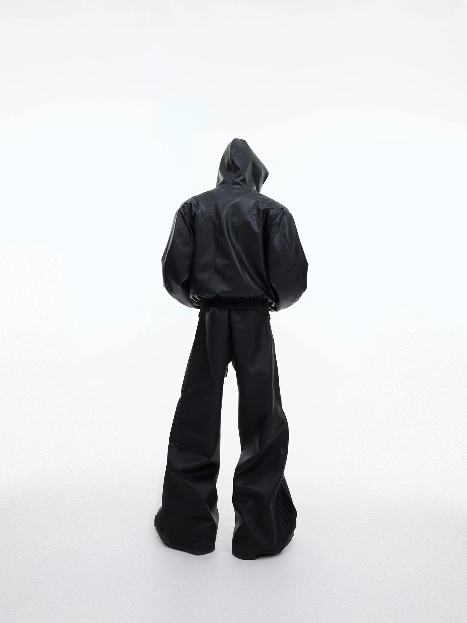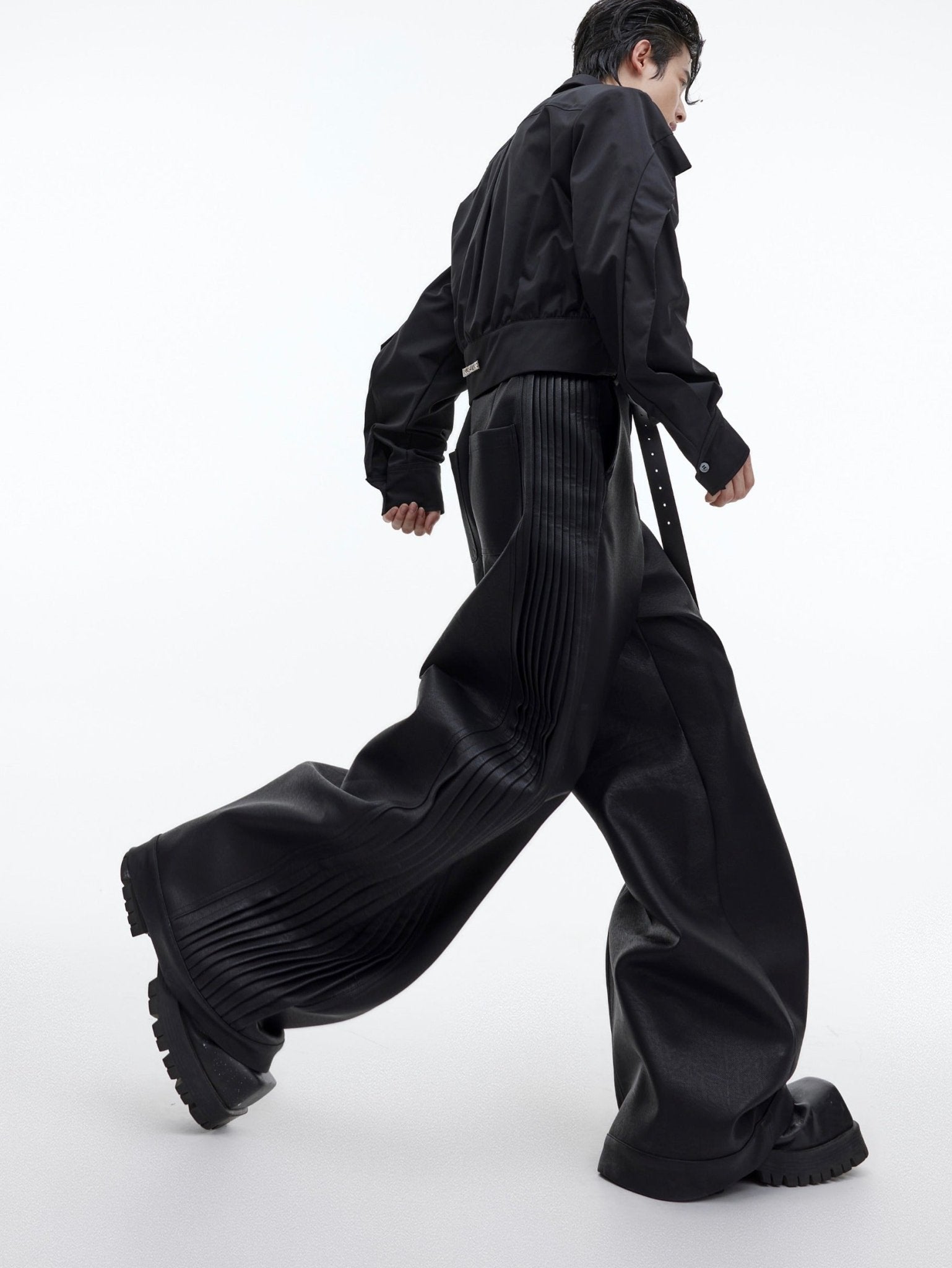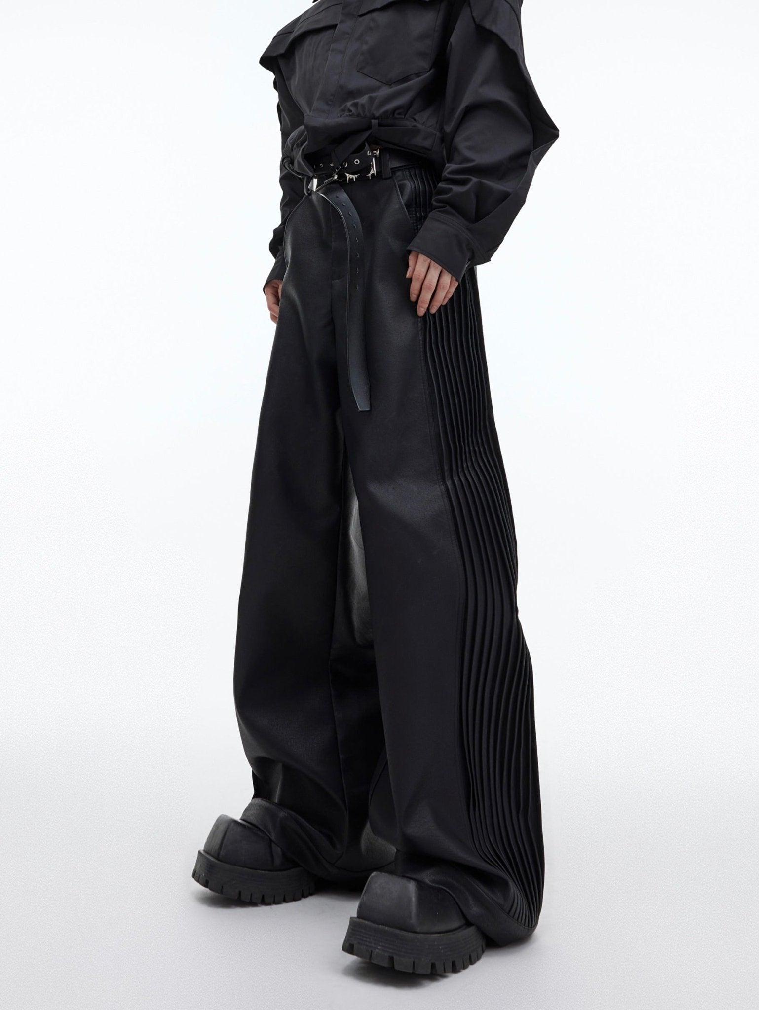 Matte Faux Leather Pleated Wide-Leg Trousers | Casual Edgy Pants