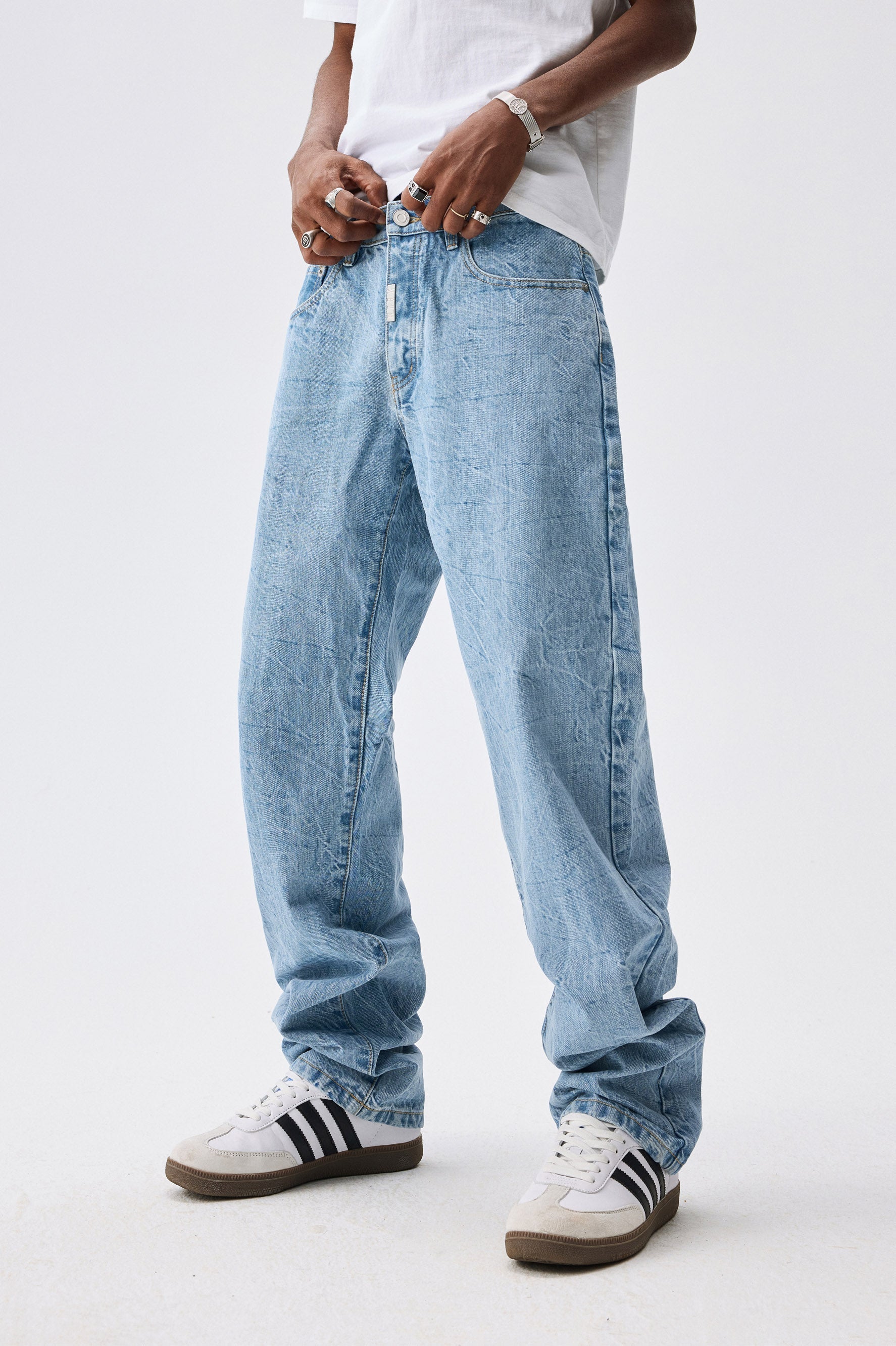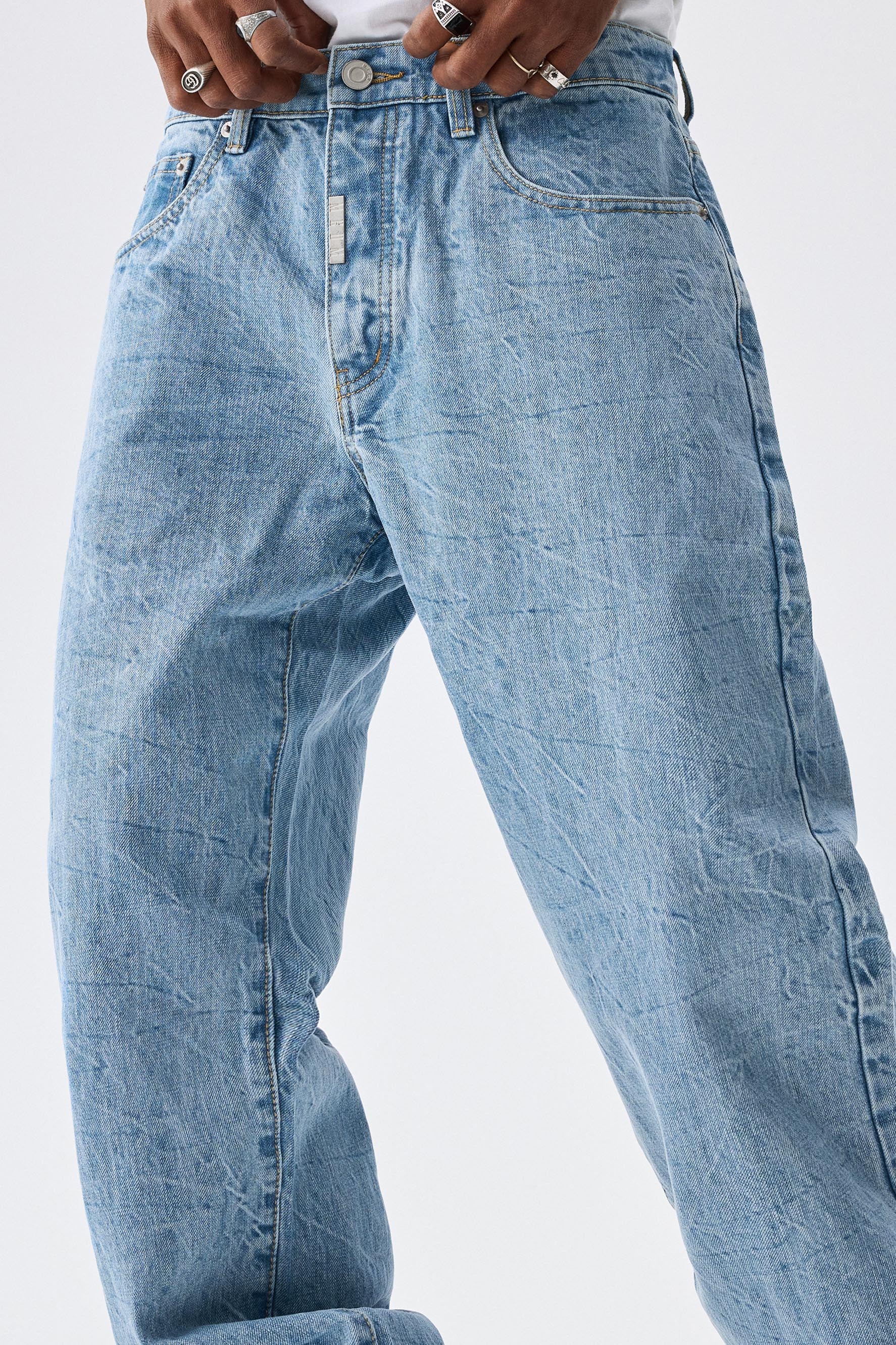 MEDM CORRUGATED JEANS のご紹介です。オーガニックコットンで作られており、快適なフィット感と全体に施された波形パターンがユニークなスタイルを実現しています。このジーンズには、利便性を高める 2 つのフロントポケットと、控えめながらもスタイリッシュな外観を実現するウォッシュドブルー効果も備わっています。持続可能な方法で作られたこのジーンズで、ワードローブをアップグレードしましょう。