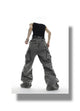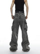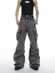 Men's Distressed Washed Wide-LegJ eans with Oversized Pockets