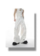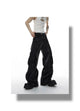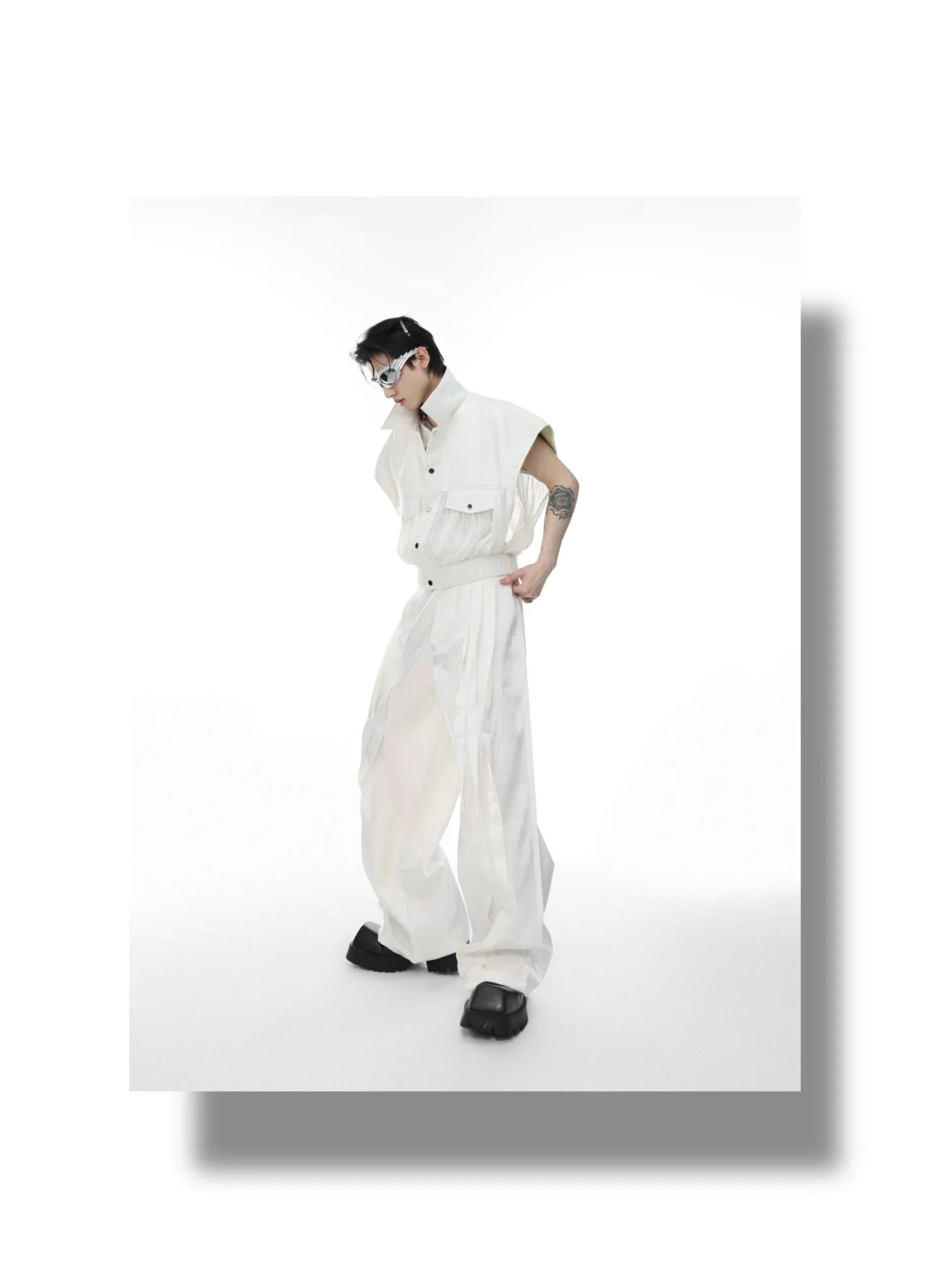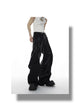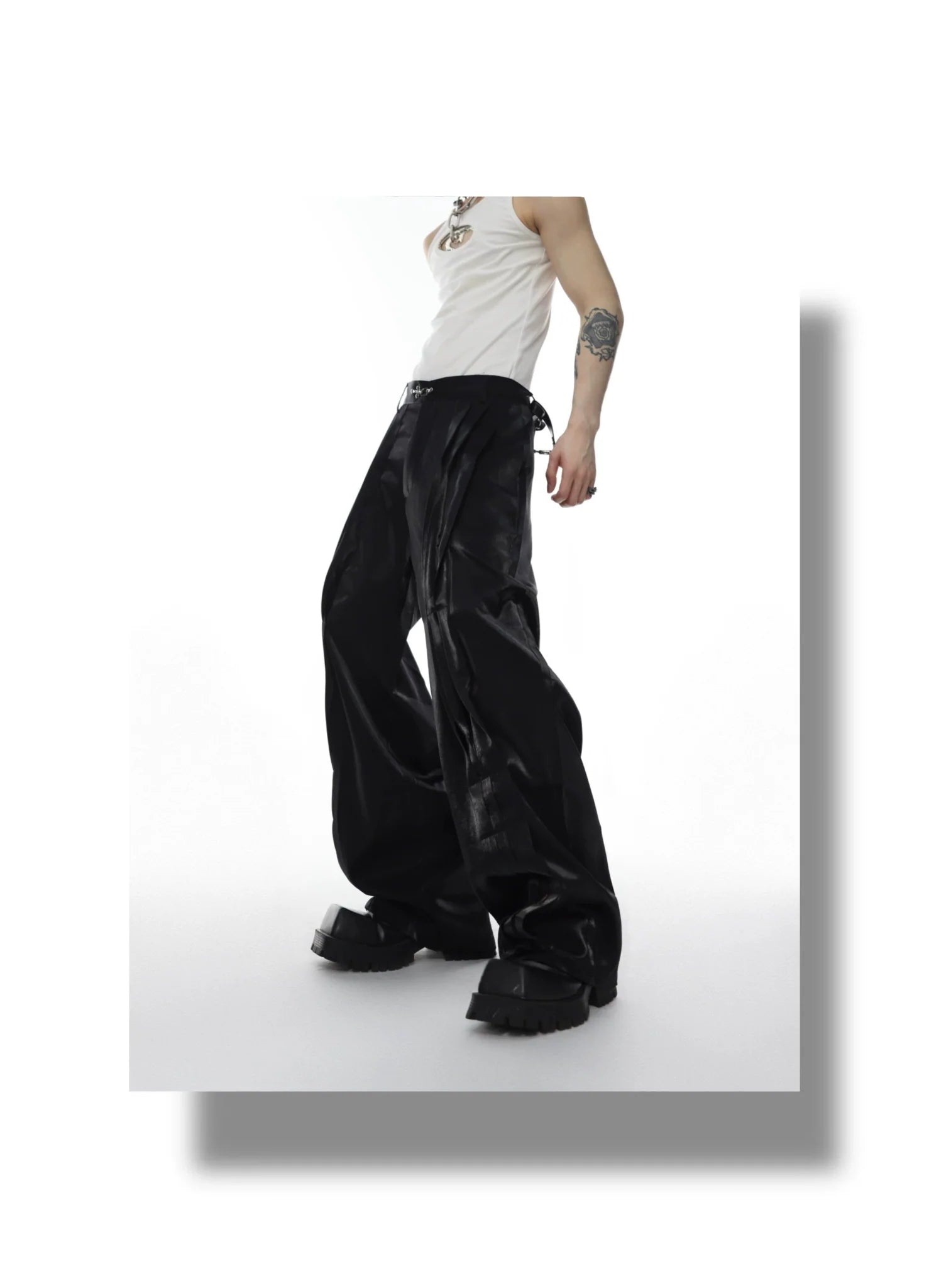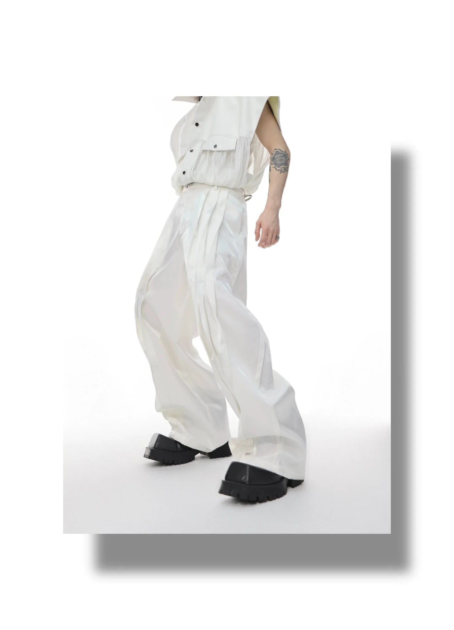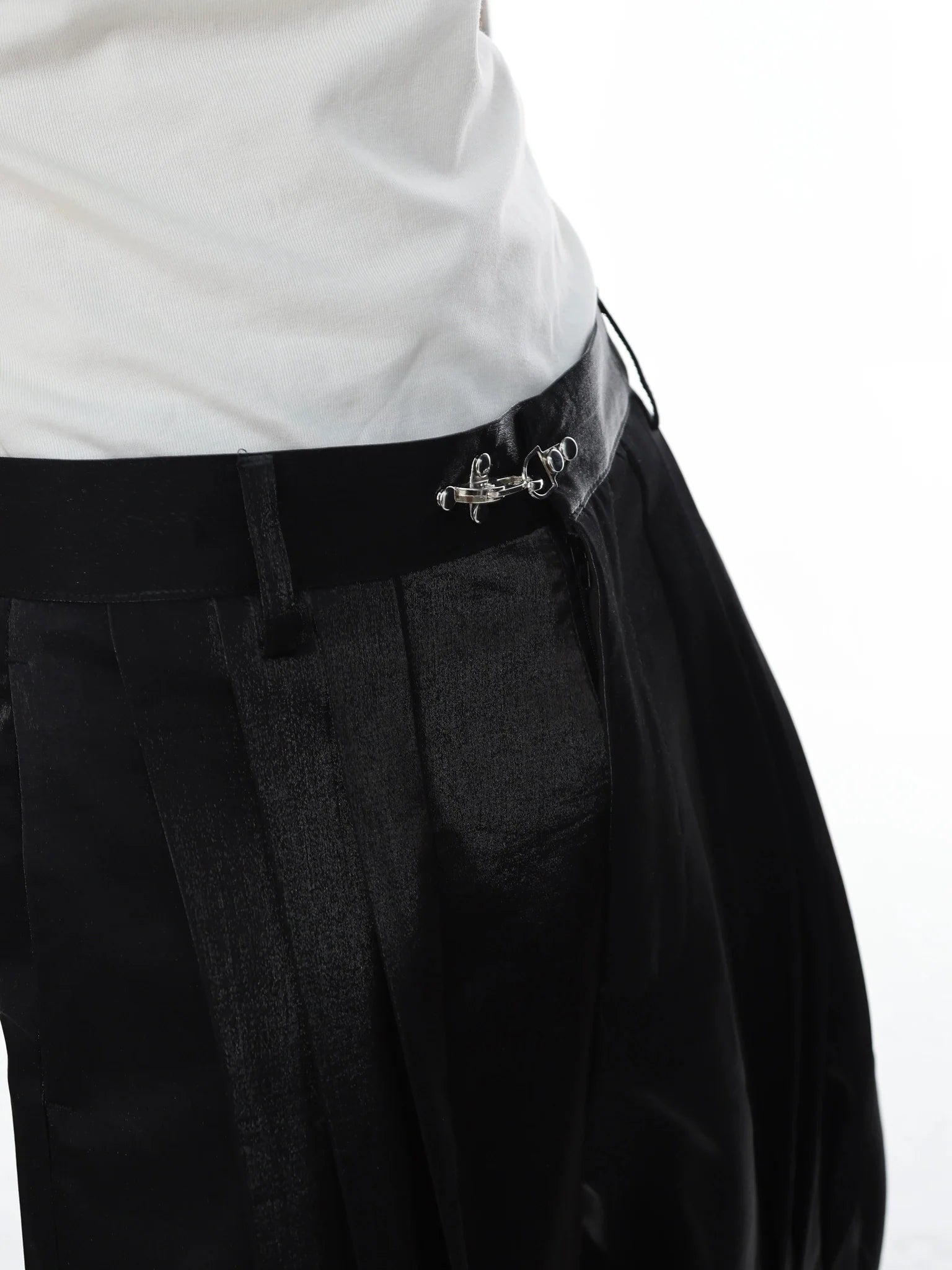 Metallic Sheen Straight-Leg Pants with Button Detail and Pleated