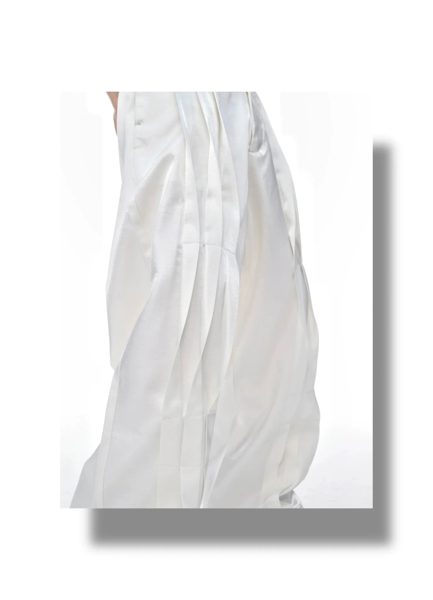 - Metallic-look fabric with structured pleats offers an unparalleled sense of luxury.