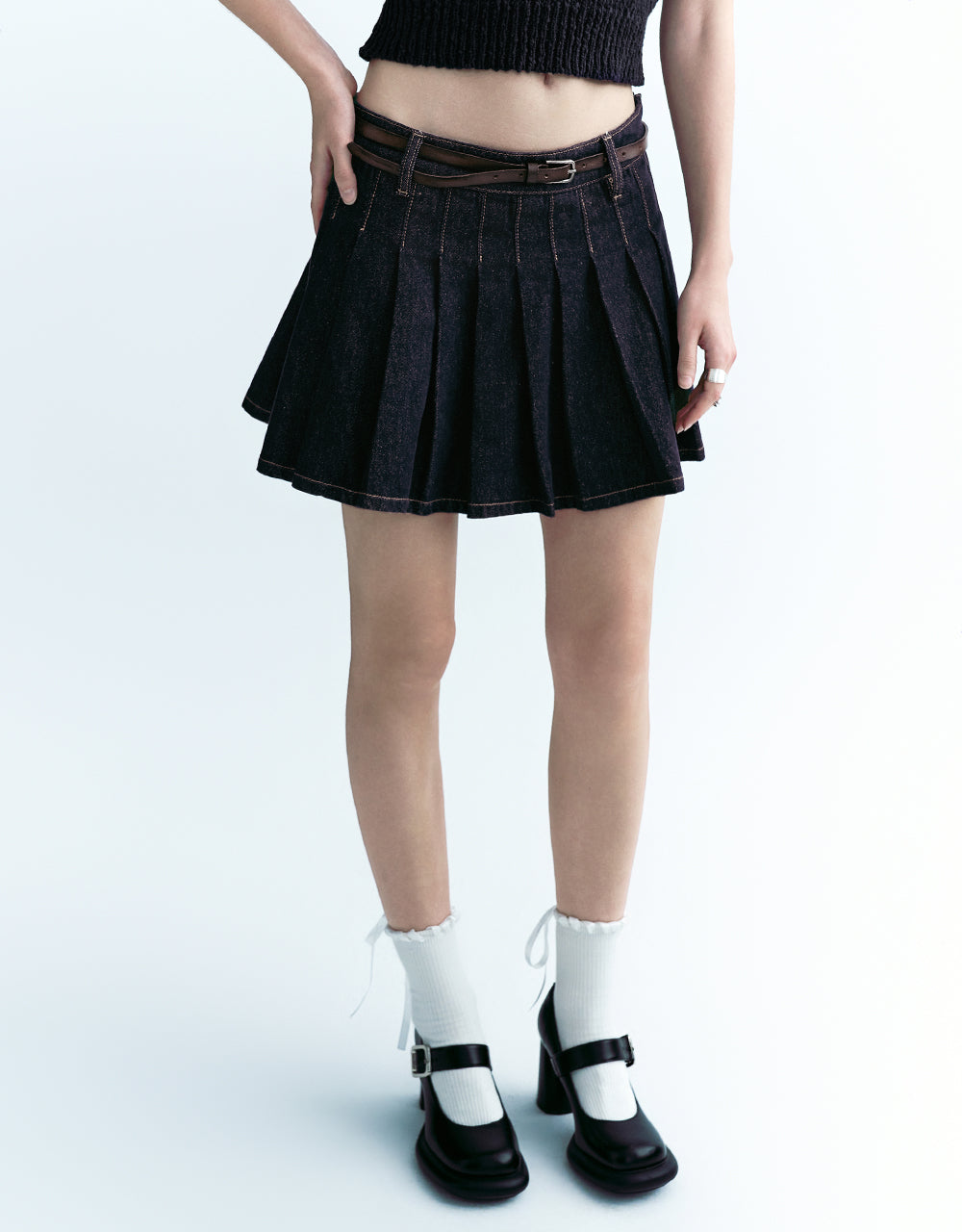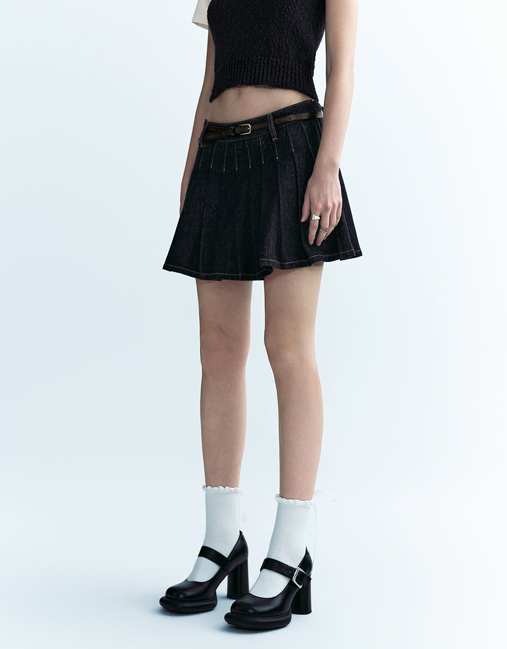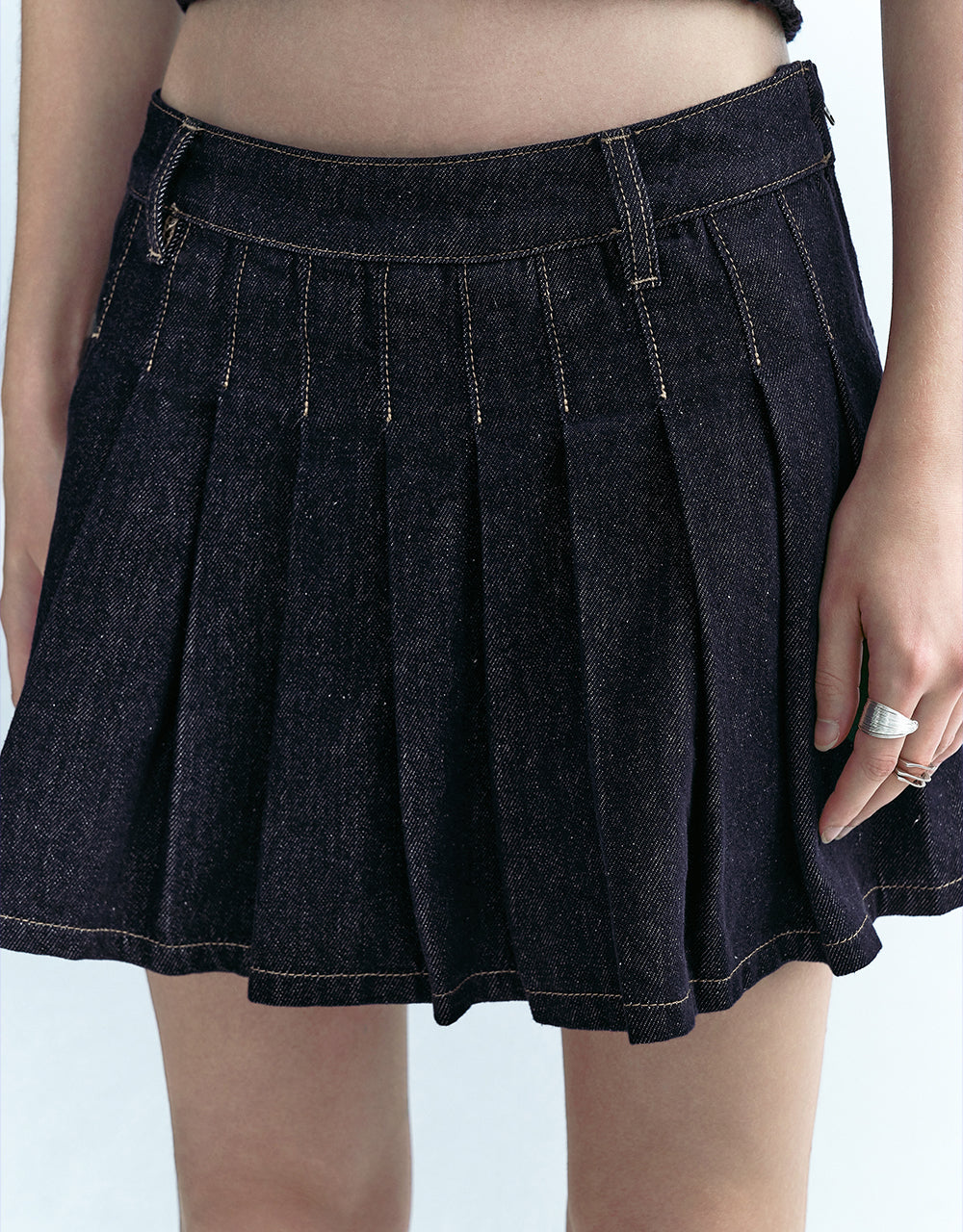 Pleated Mini Denim Skirt
