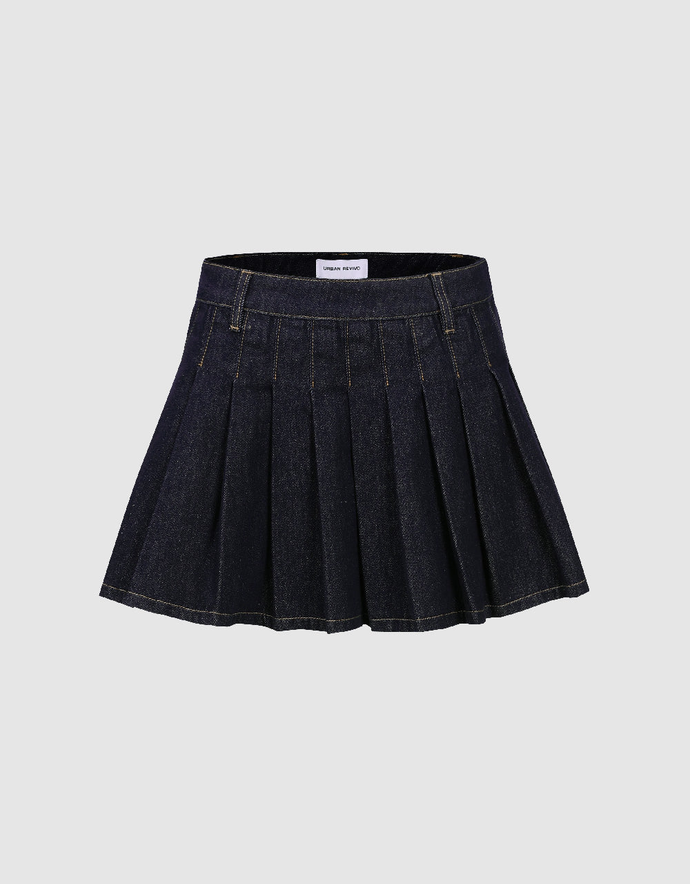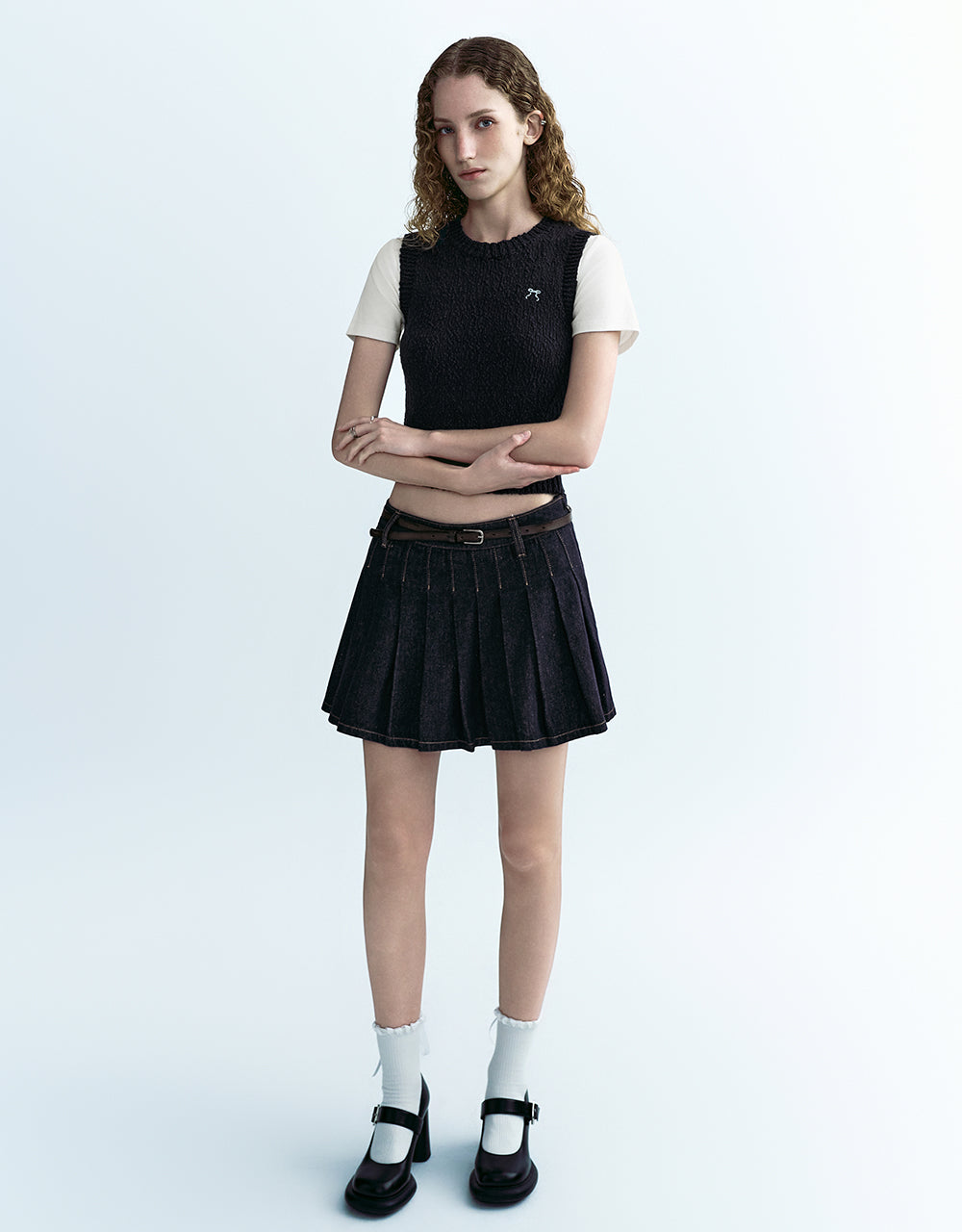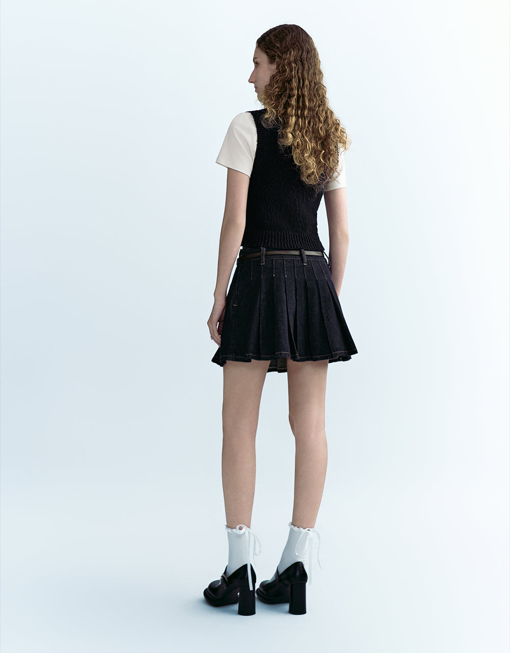 Pleated Mini Denim Skirt