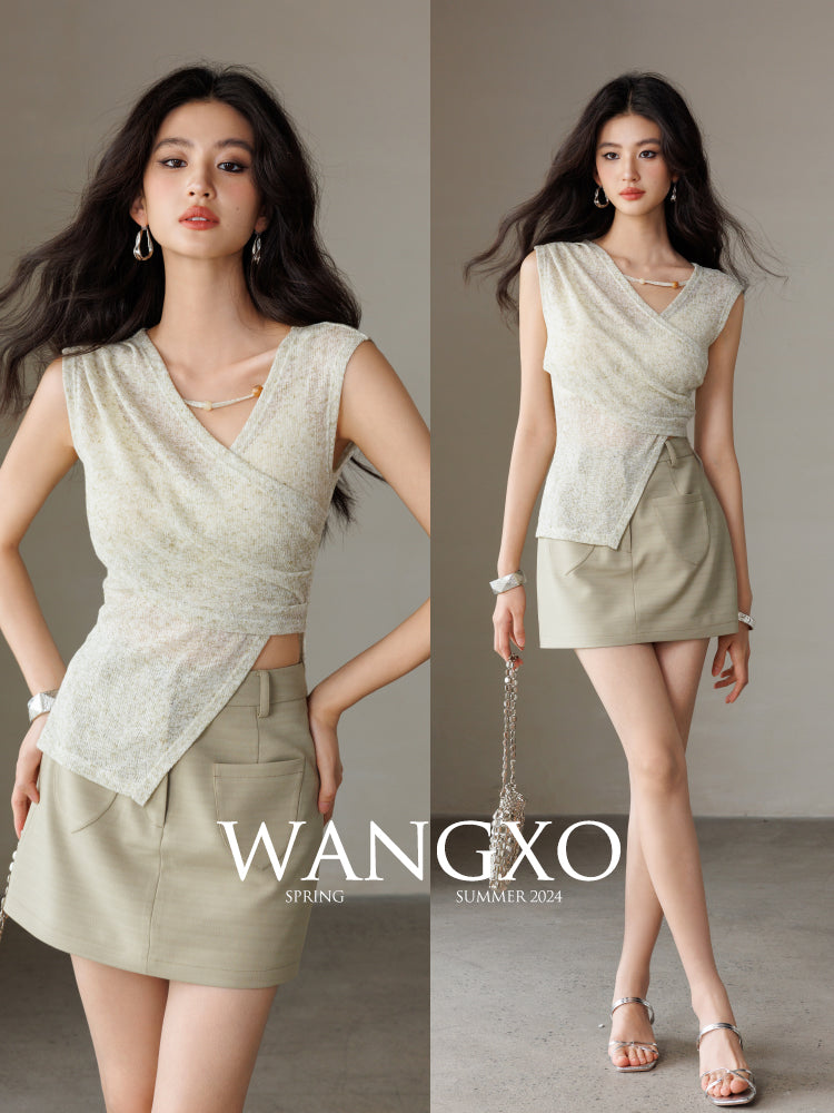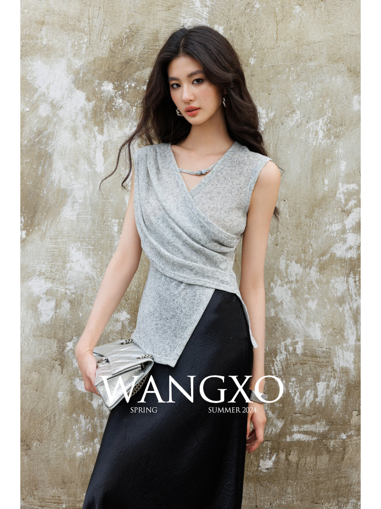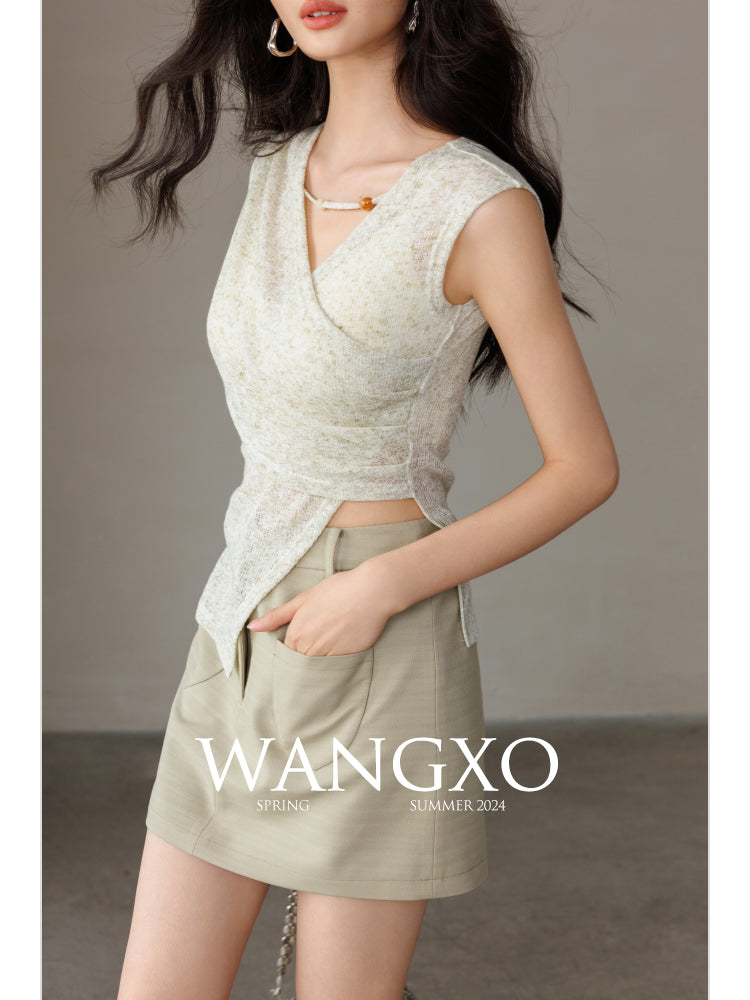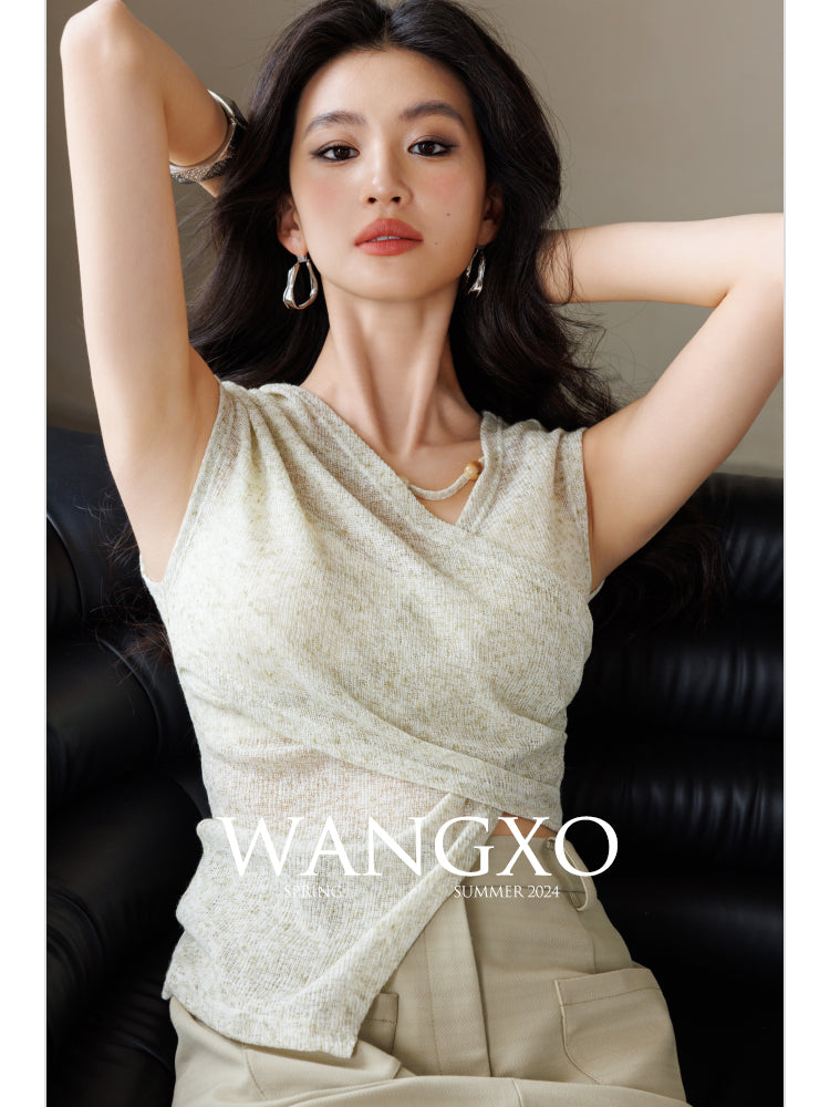 スノーフレークコットンビーズノースリーブニットトップス