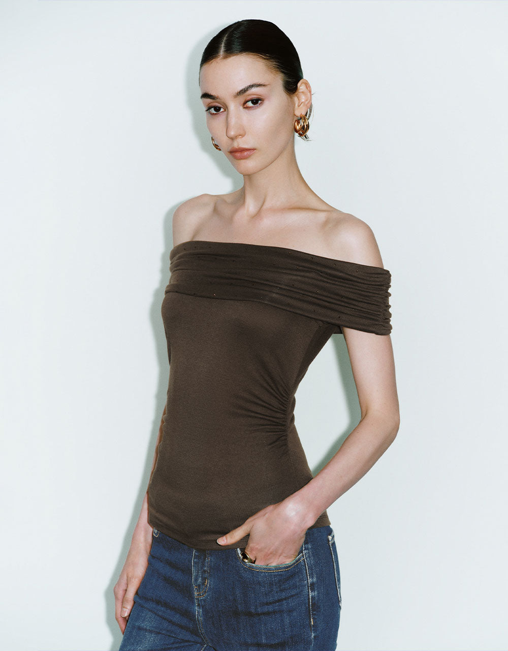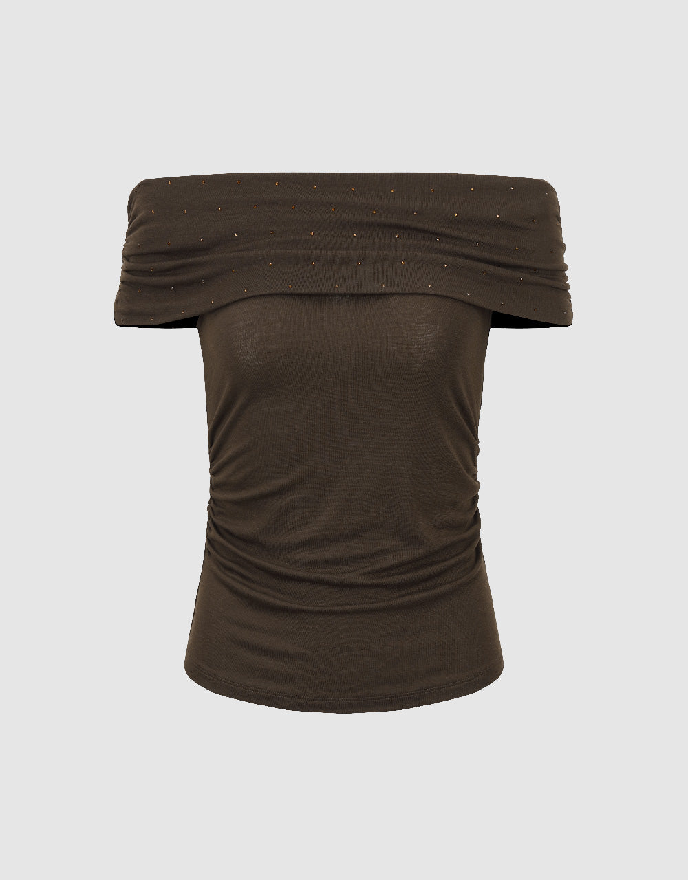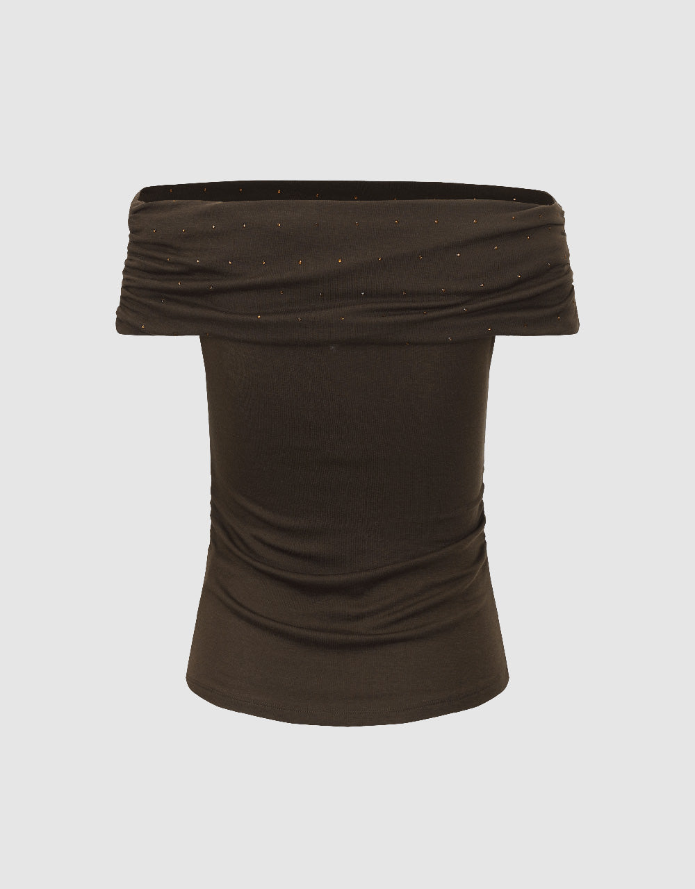Rhinestone Décor Off-Shoulder Skinny T-Shirt