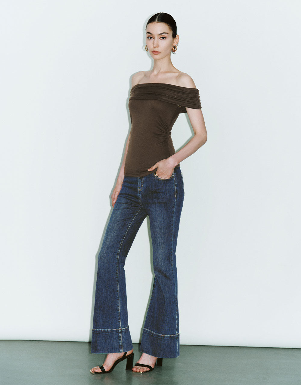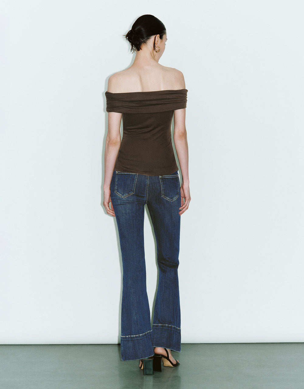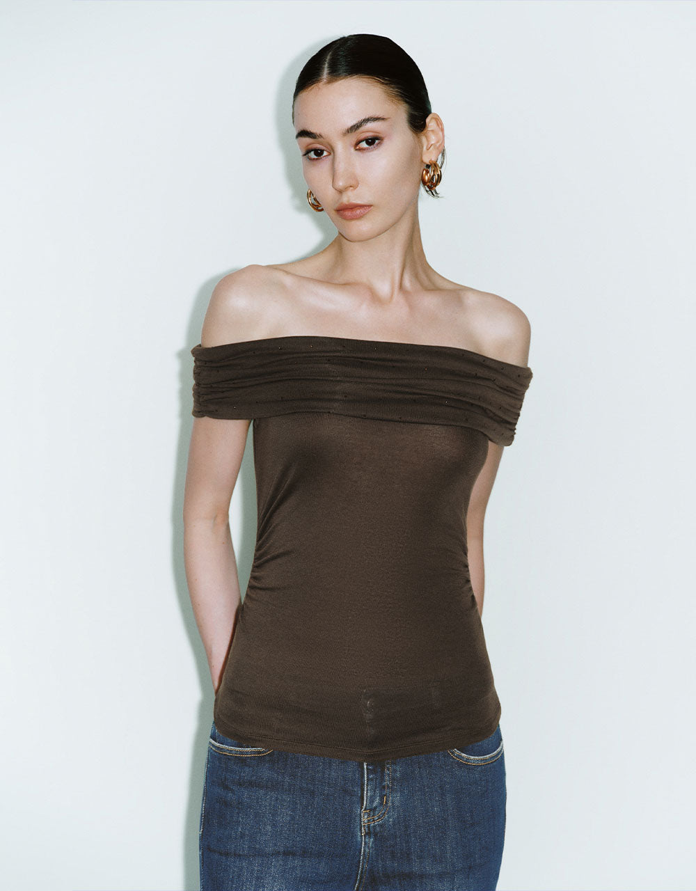 Rhinestone Décor Off-Shoulder Skinny T-Shirt