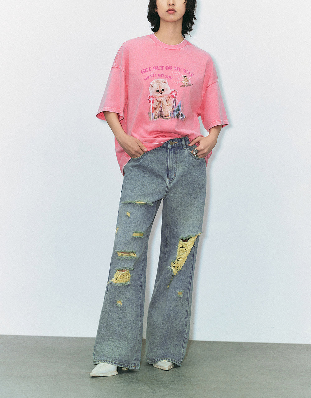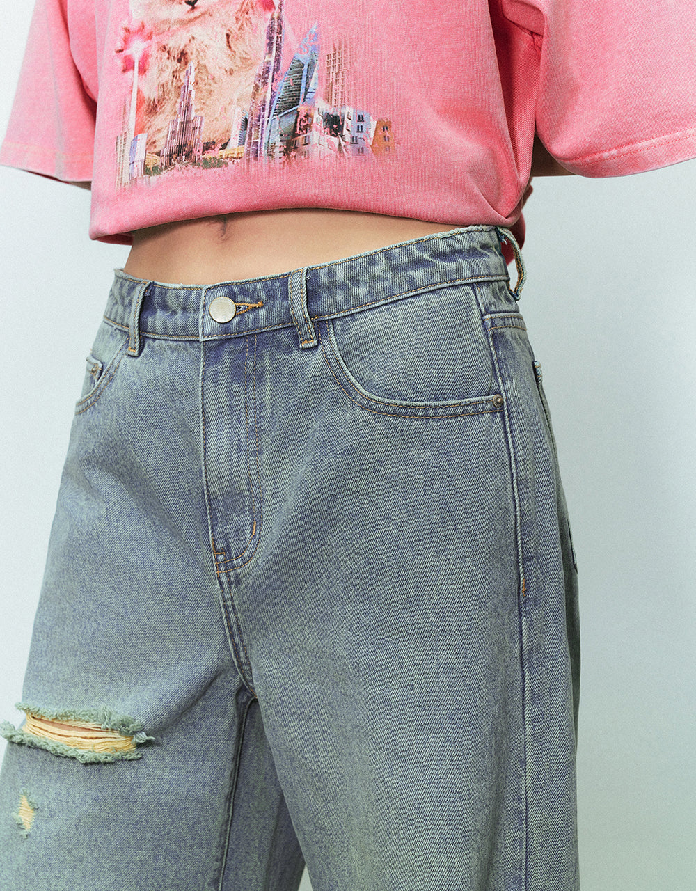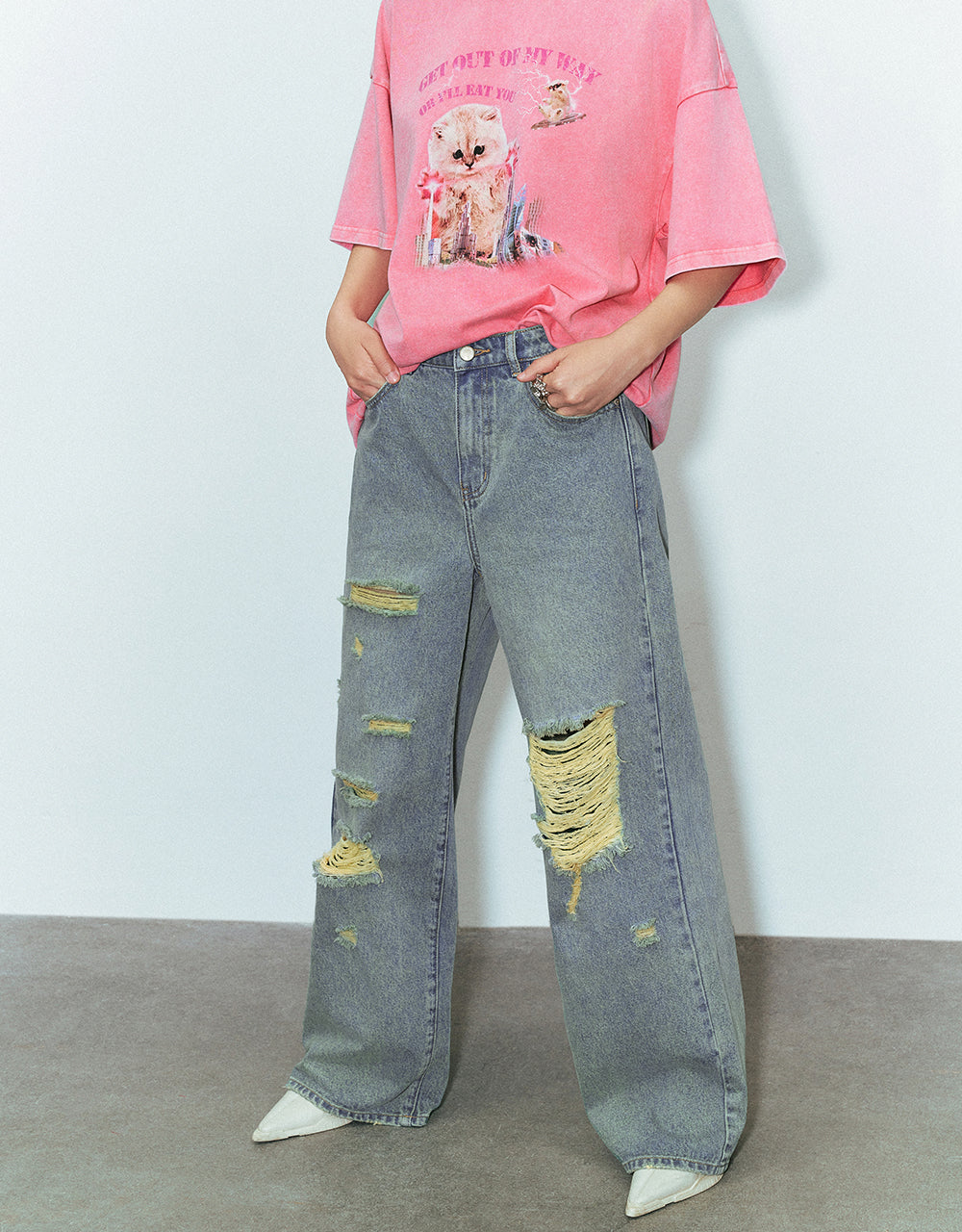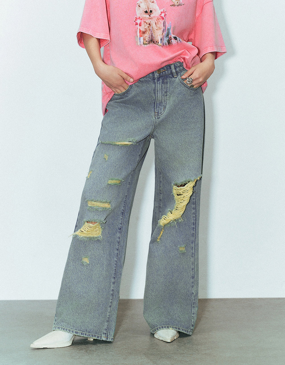 Ripped Wide-Leg Jeans