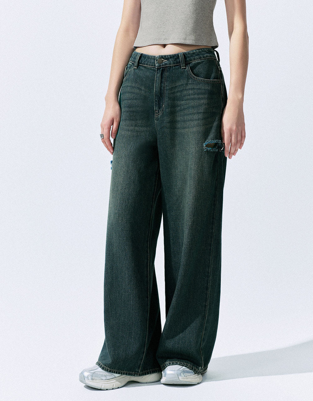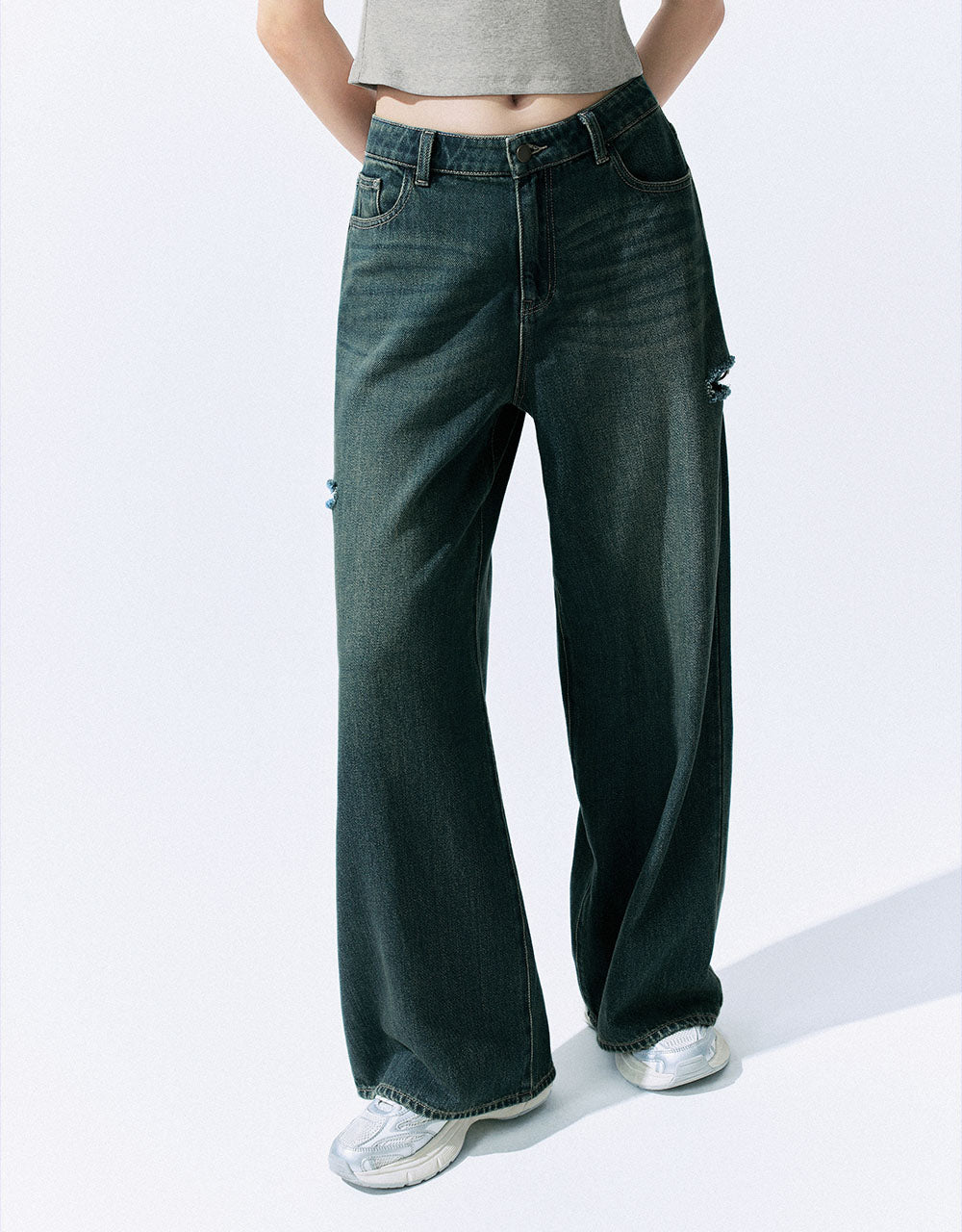 Ripped Wide-Leg Jeans