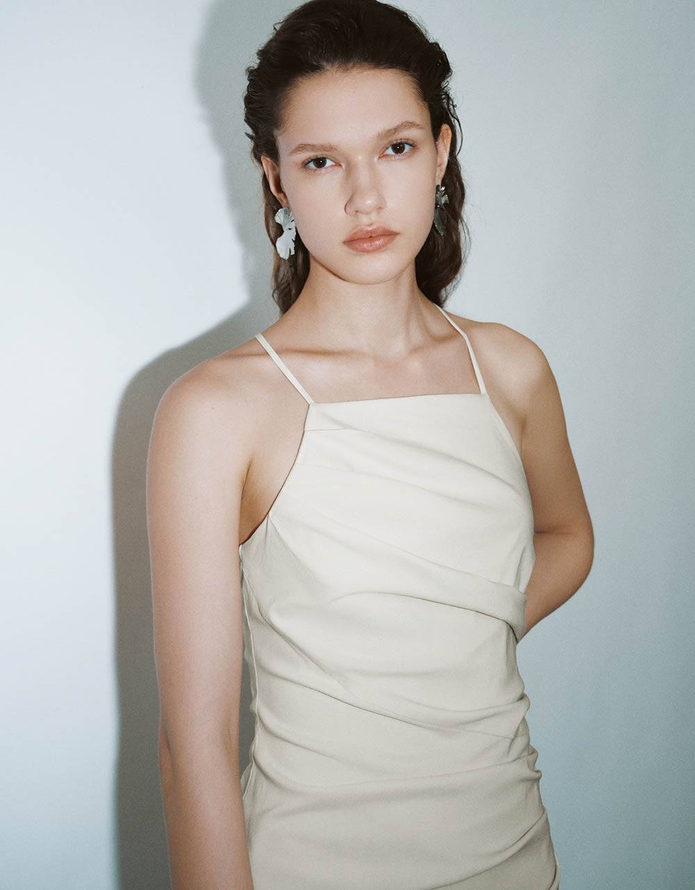 Ruched Off-Shoulder Skinny Cami Dress