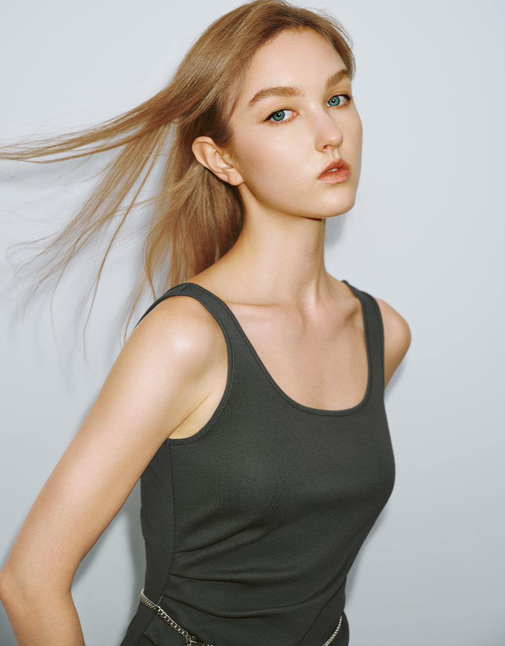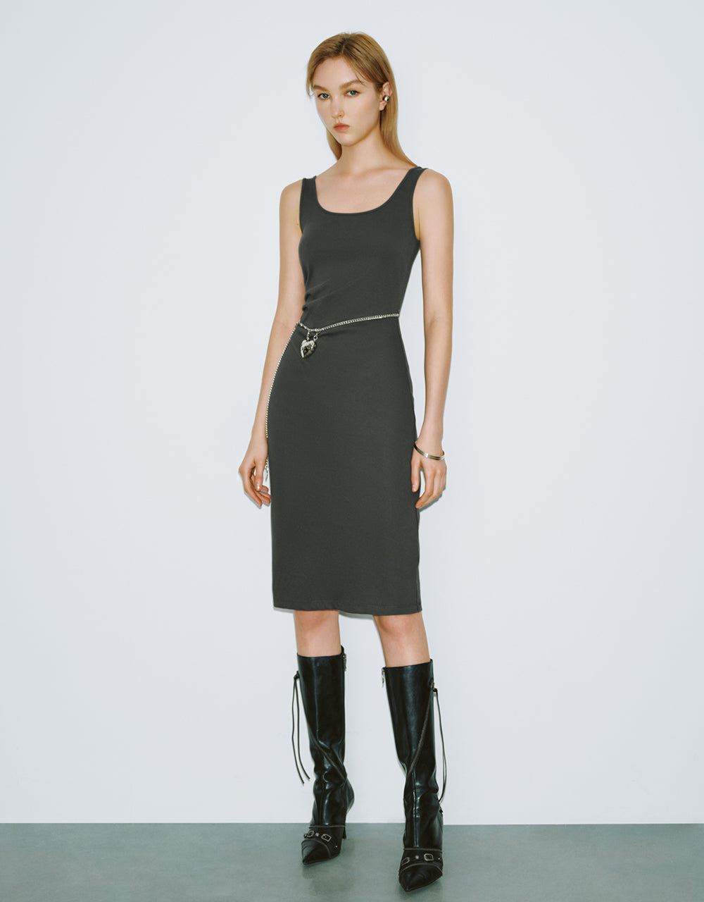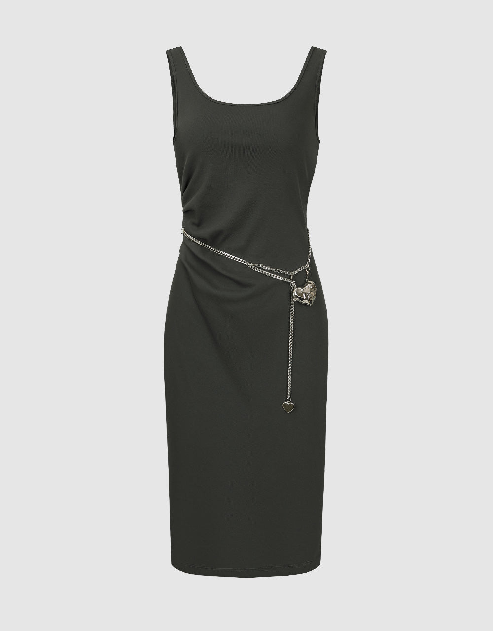 Sleeveless U Neck Skinny Dress With Chain