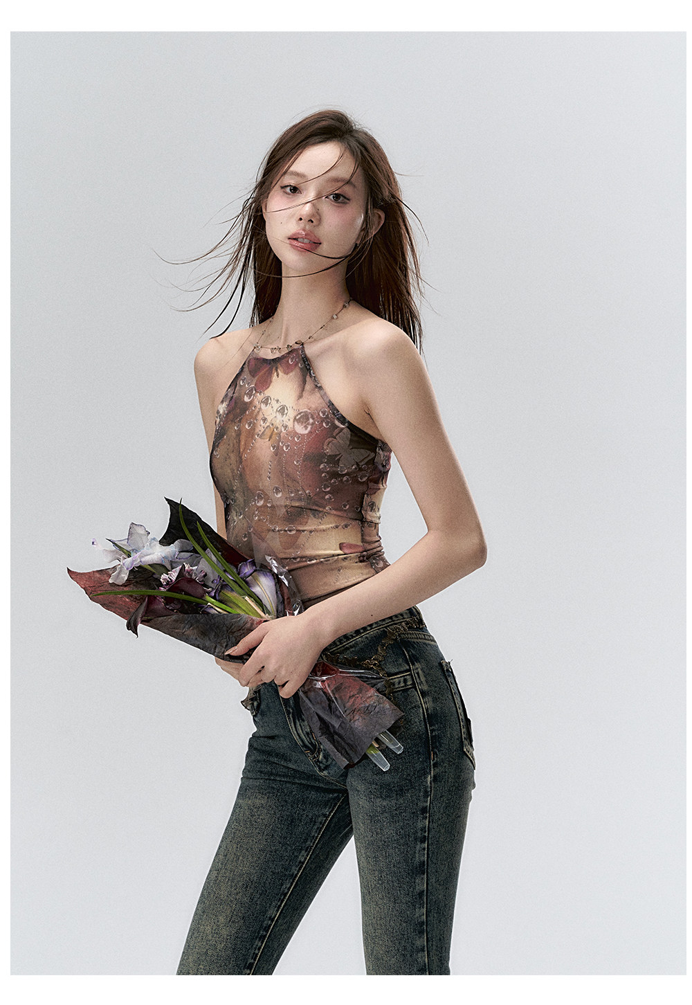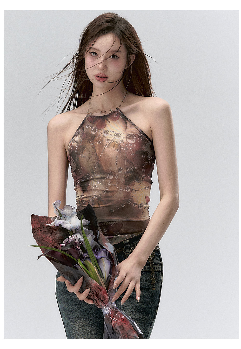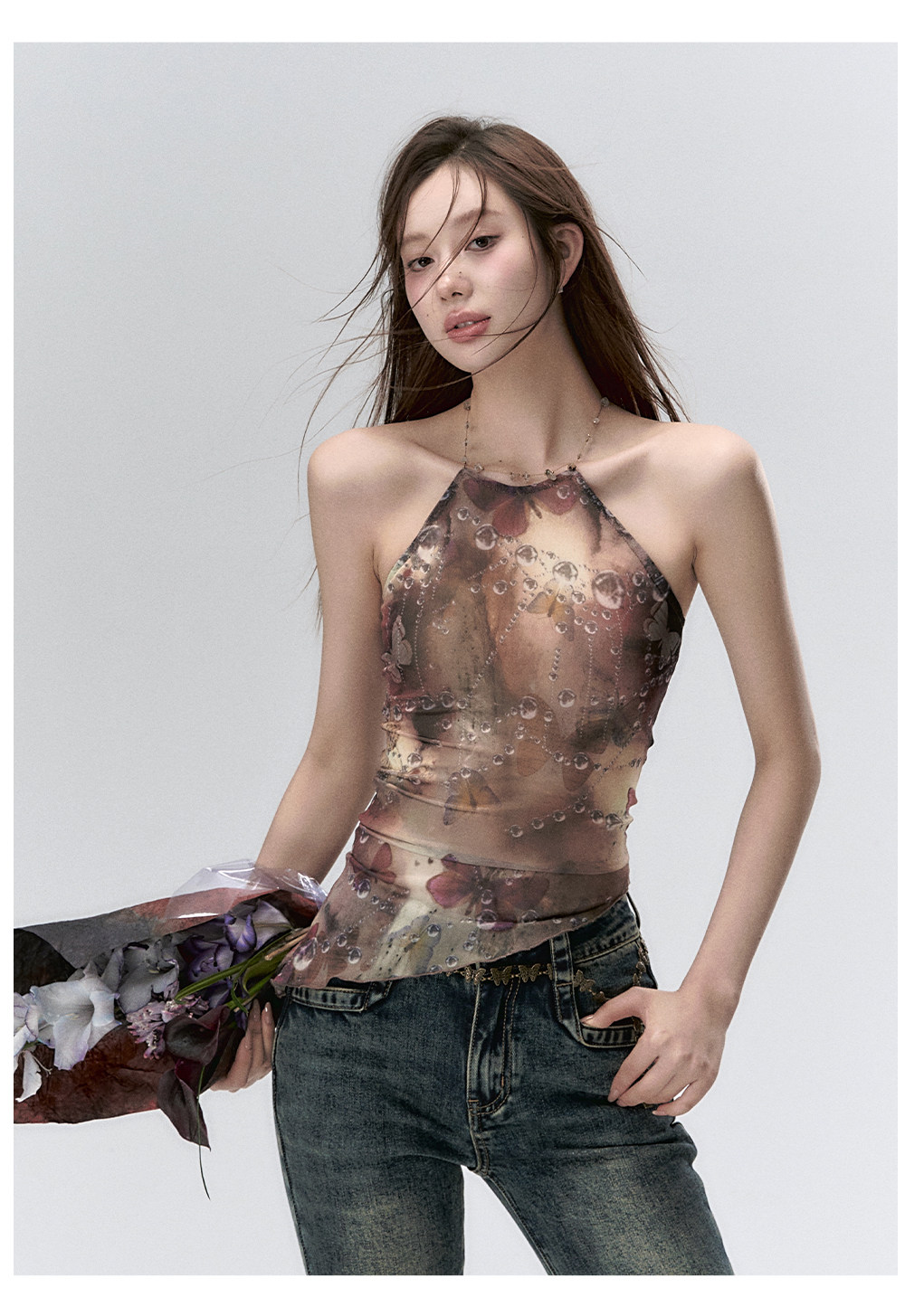 Water Droplet Butterfly Halter Irregular Camisole