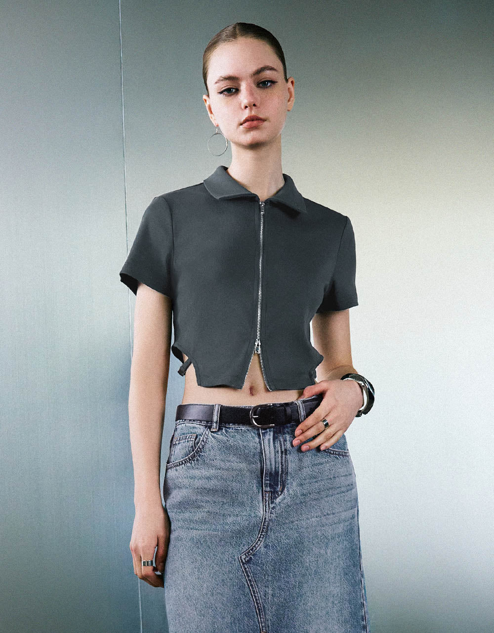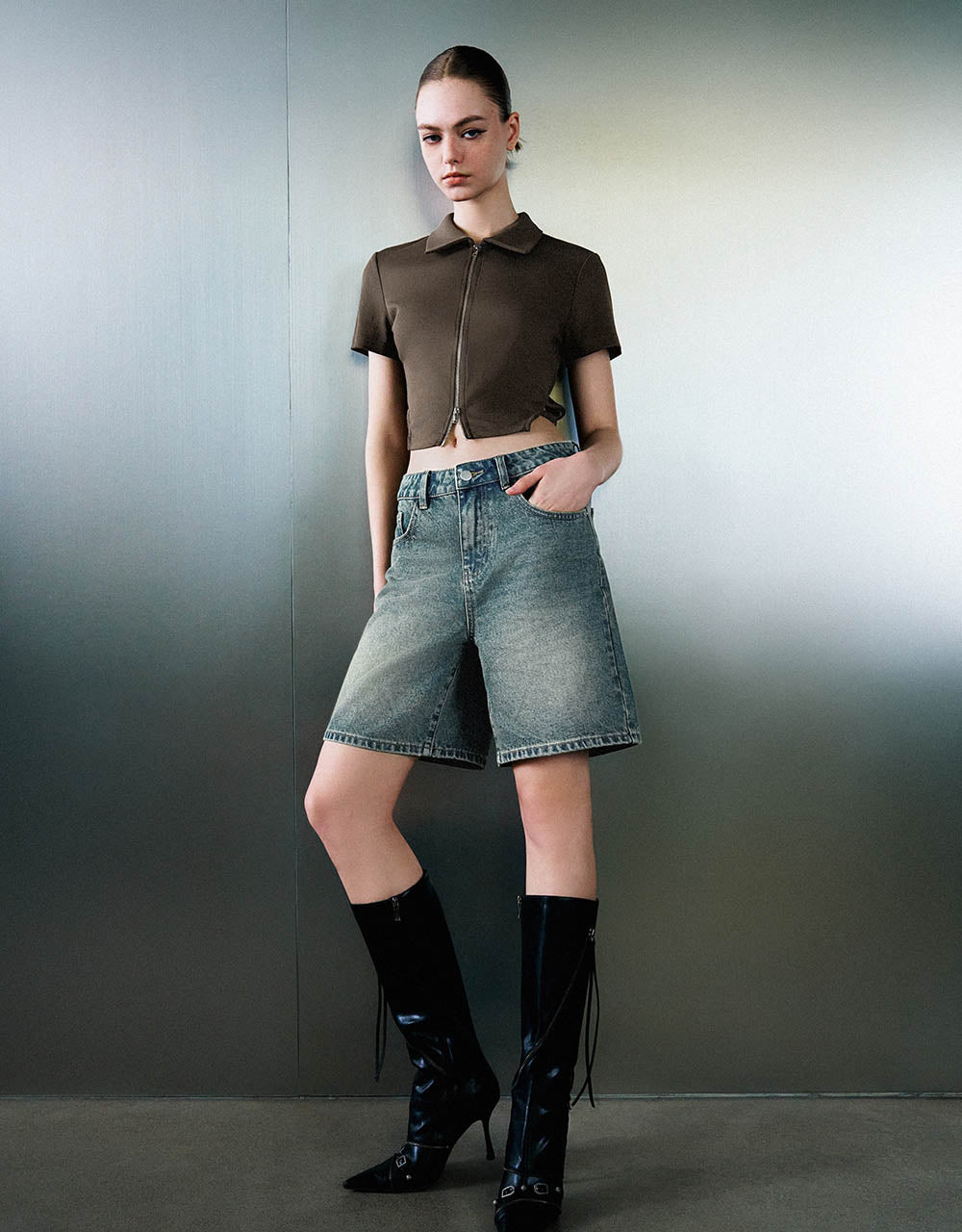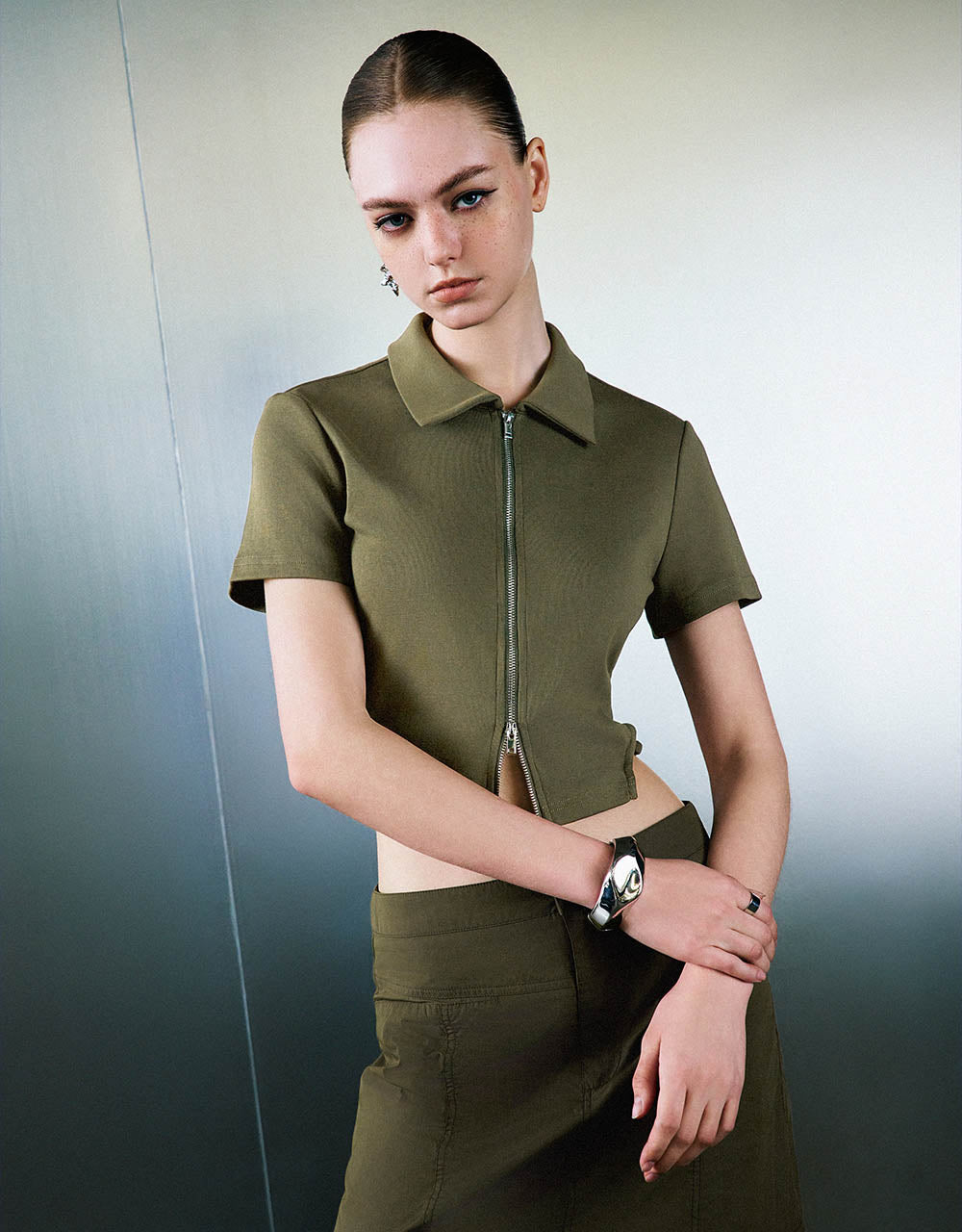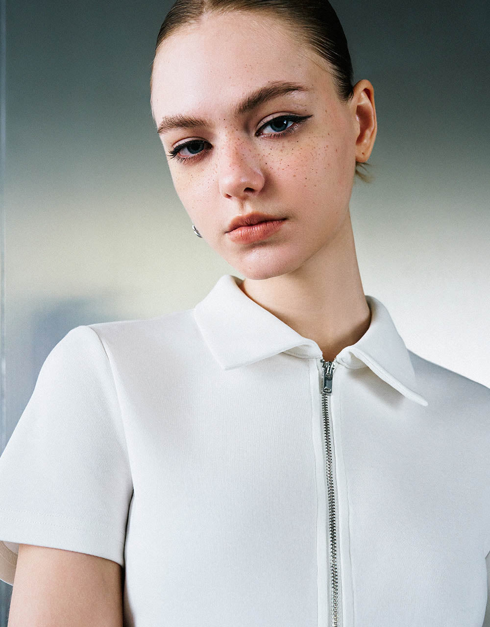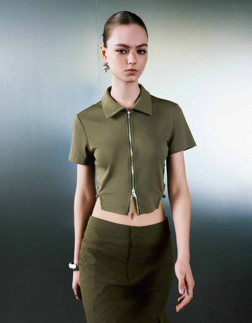 Zipper Front Knitted Lapel Shirt