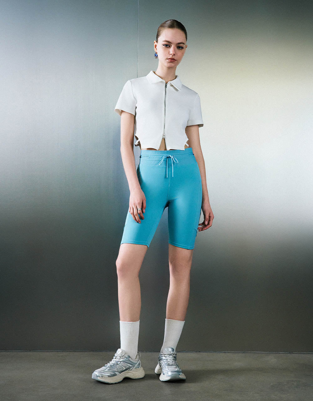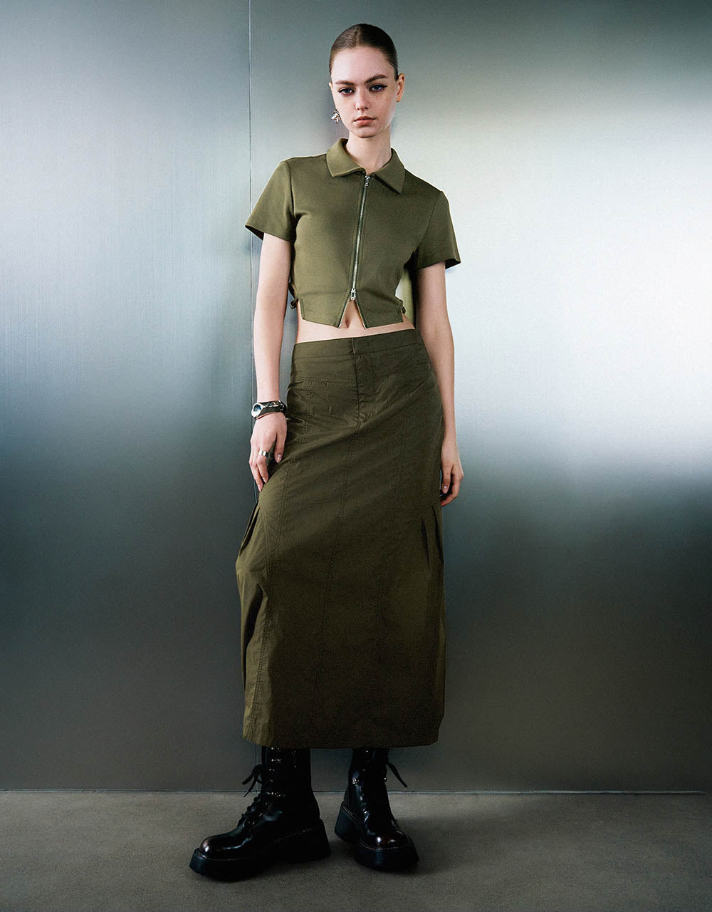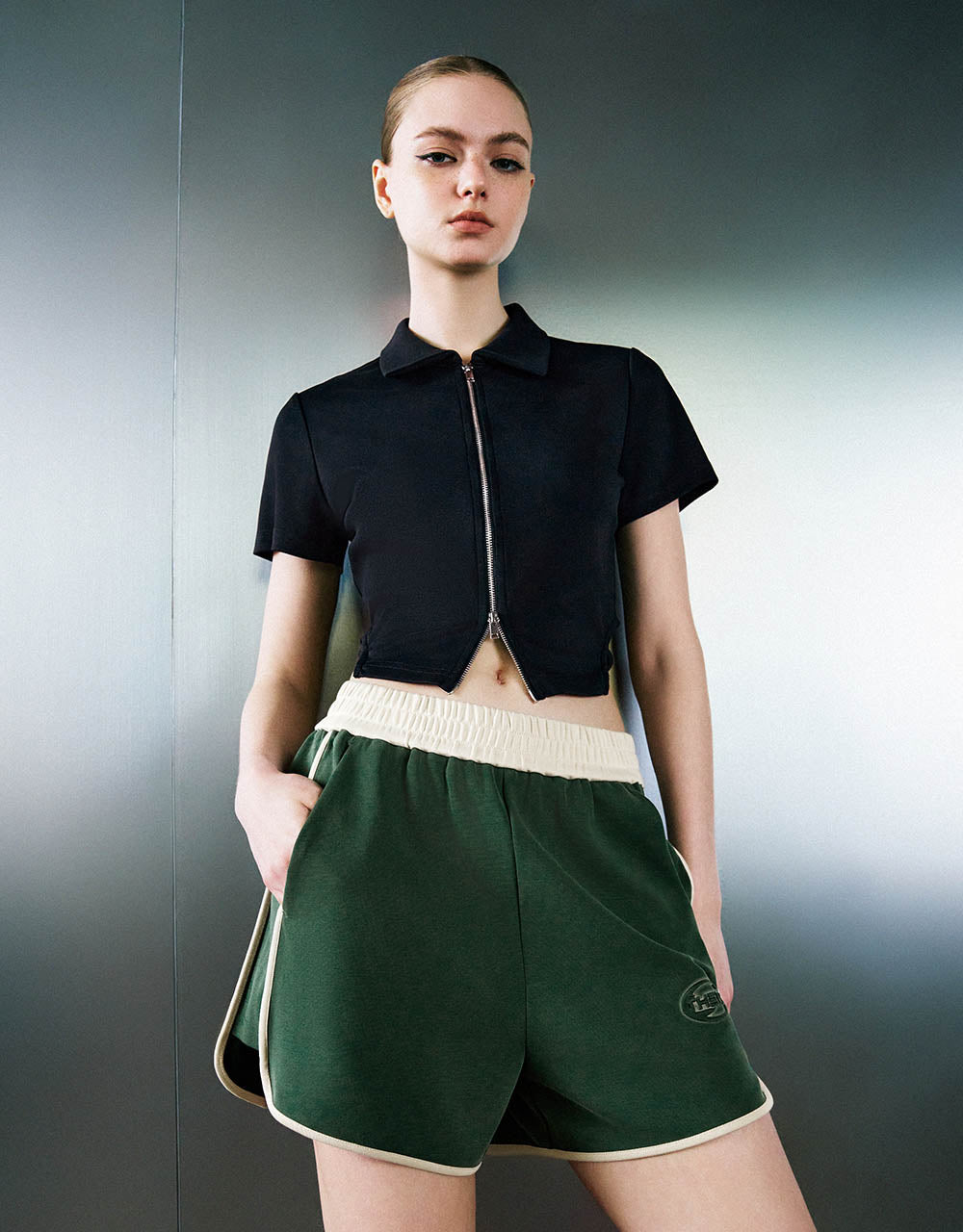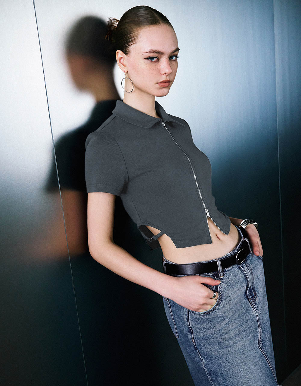 Zipper Front Knitted Lapel Shirt