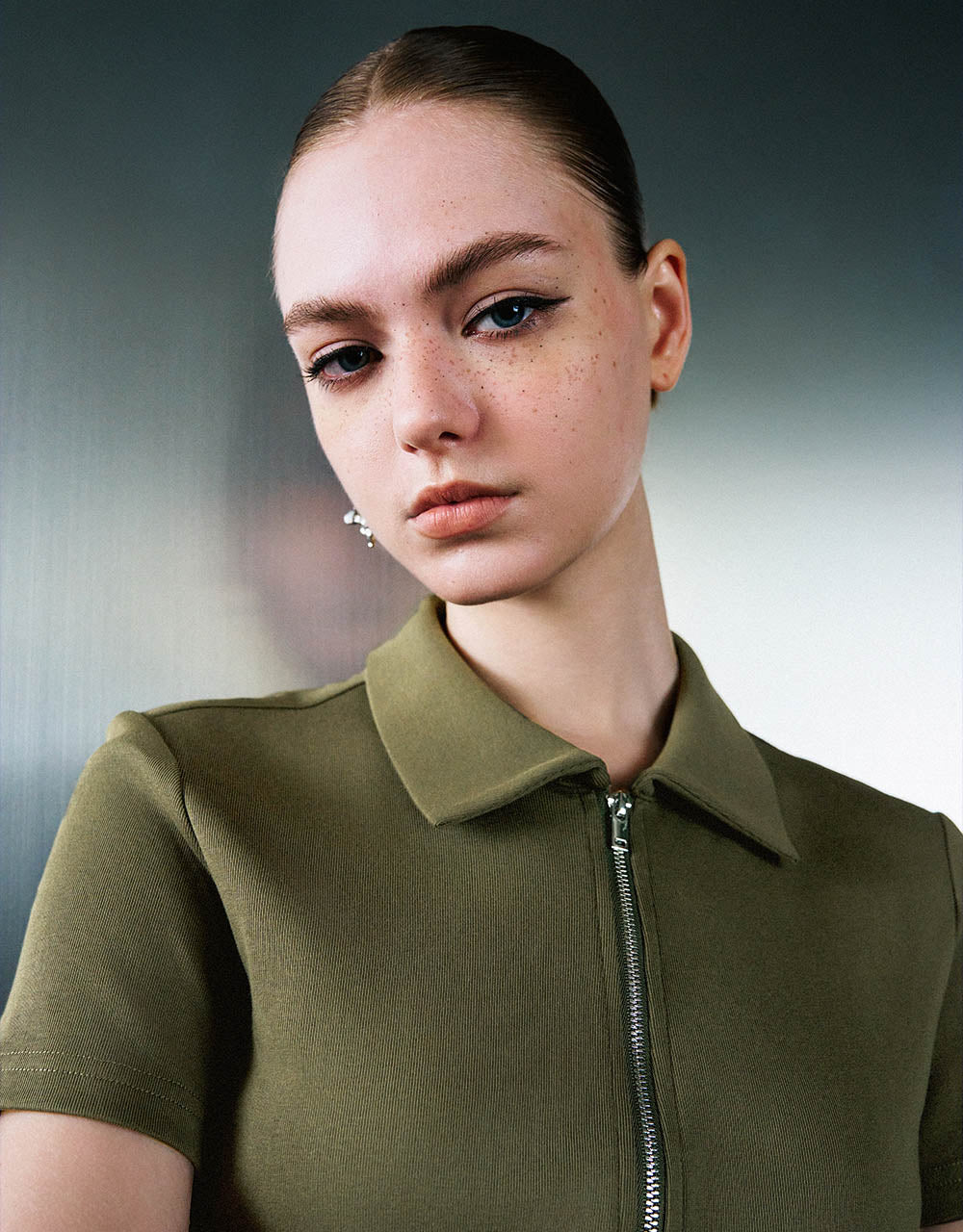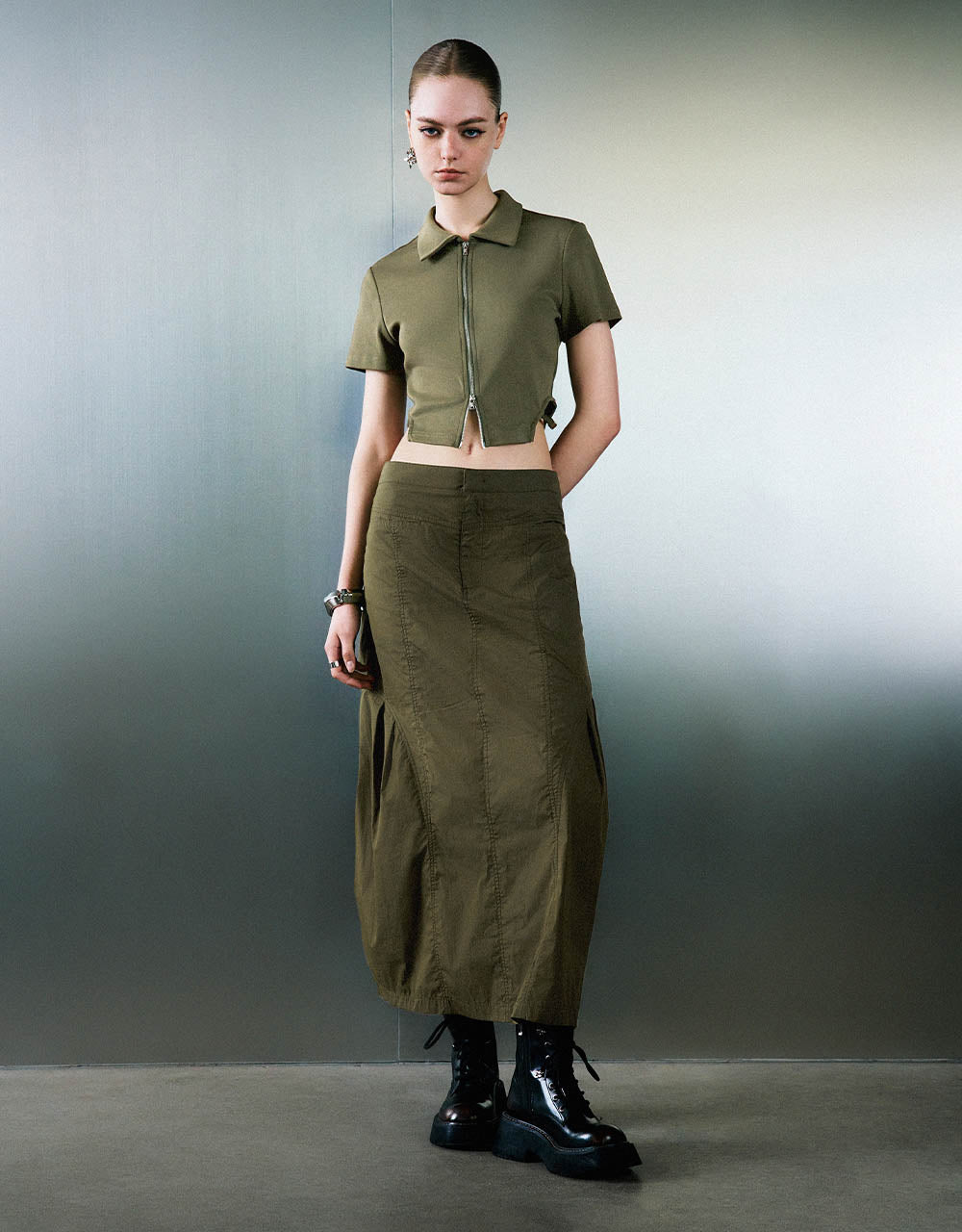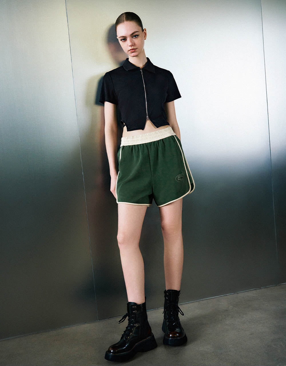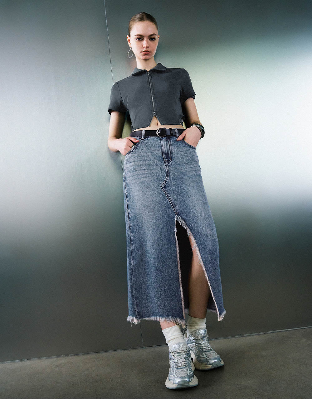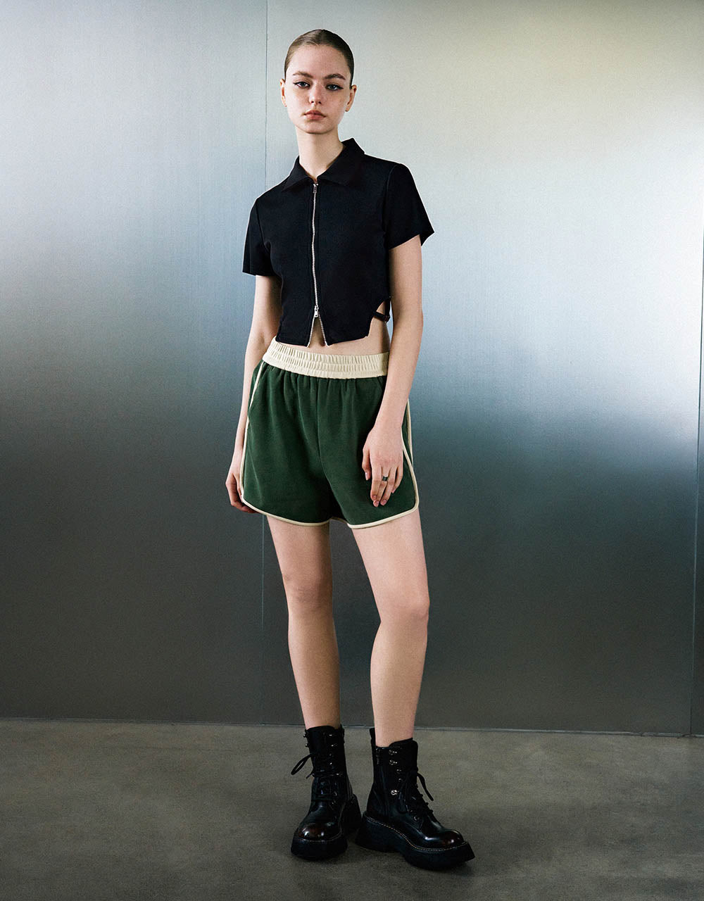 Zipper Front Knitted Lapel Shirt