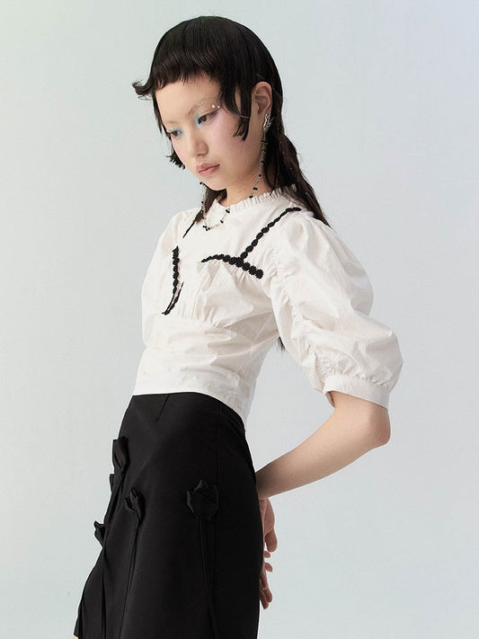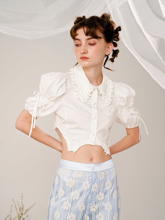프릴니치 쇼트 퍼프슬리브 블라우스
