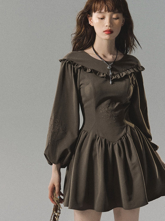 프렌치 전원자수 랜턴슬리브 원피스