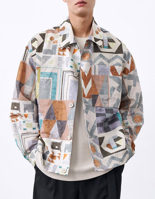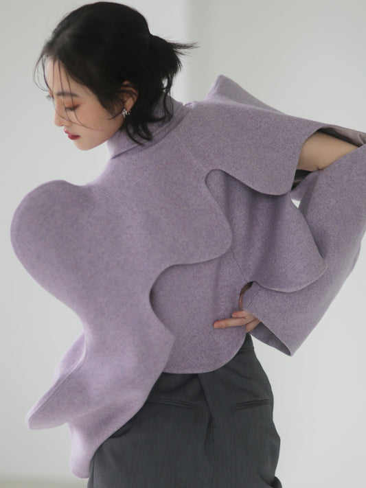 지오메트릭 아크 할로우 투피스 쇼트 울 코트