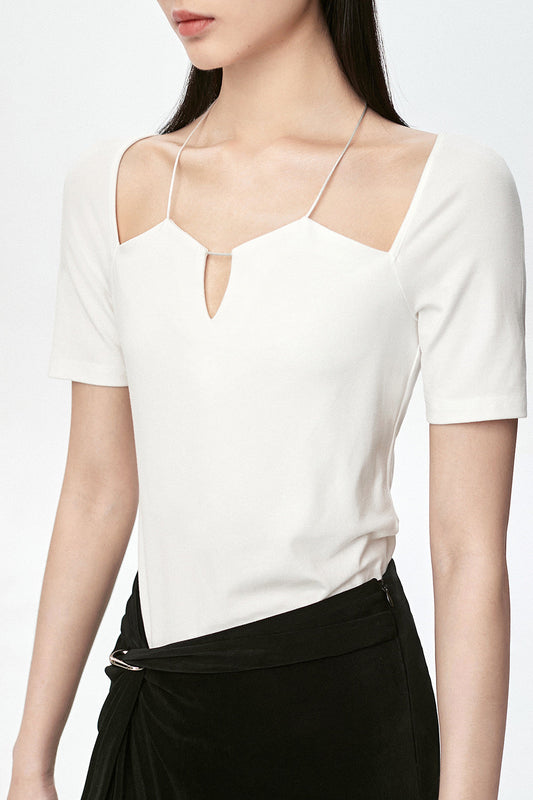 지오메트릭 홀터 컷아웃 티셔츠 화이트 색상