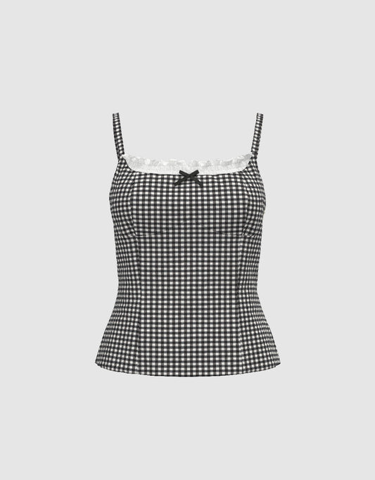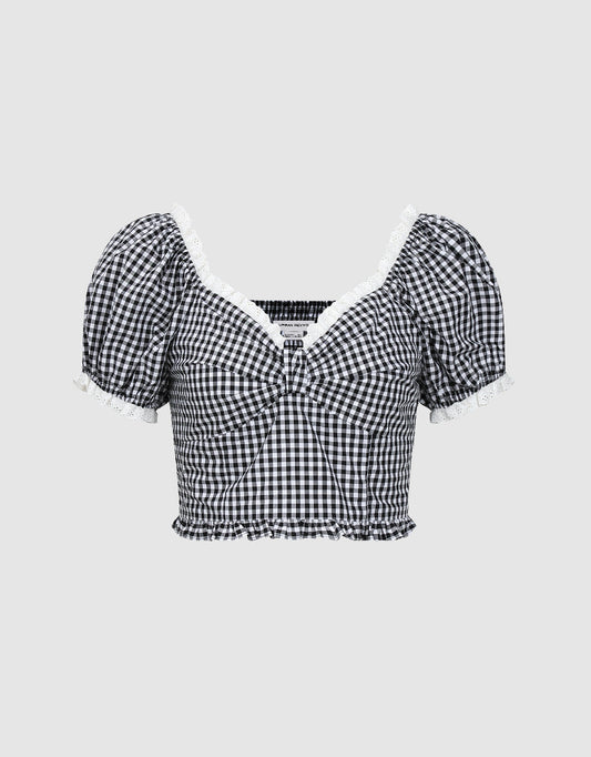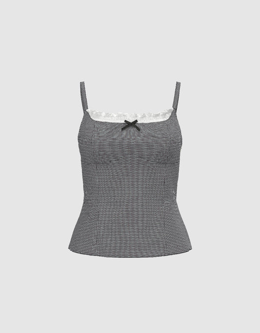 걸리 보우 패치 자수 레이스 스티치 민소매 탑