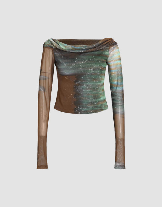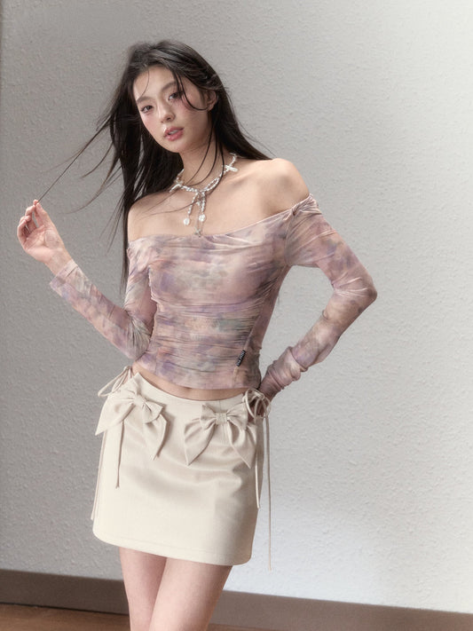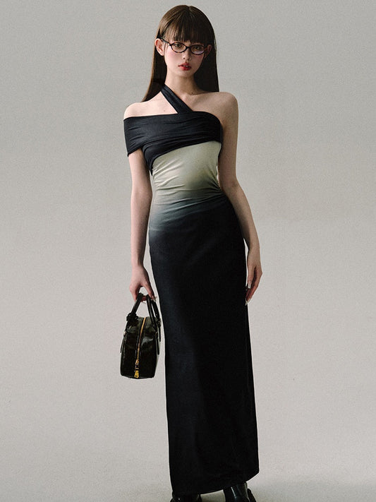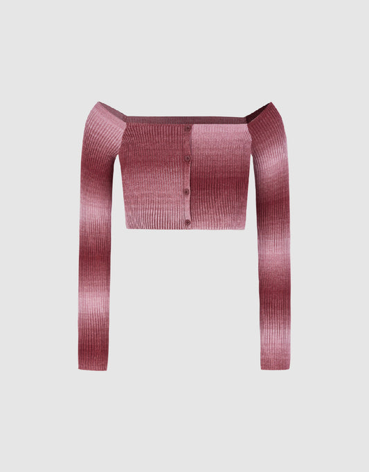 Gradient Off-Shoulder Skinny Knitted T-Shirt