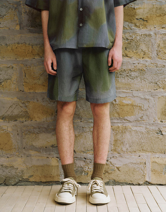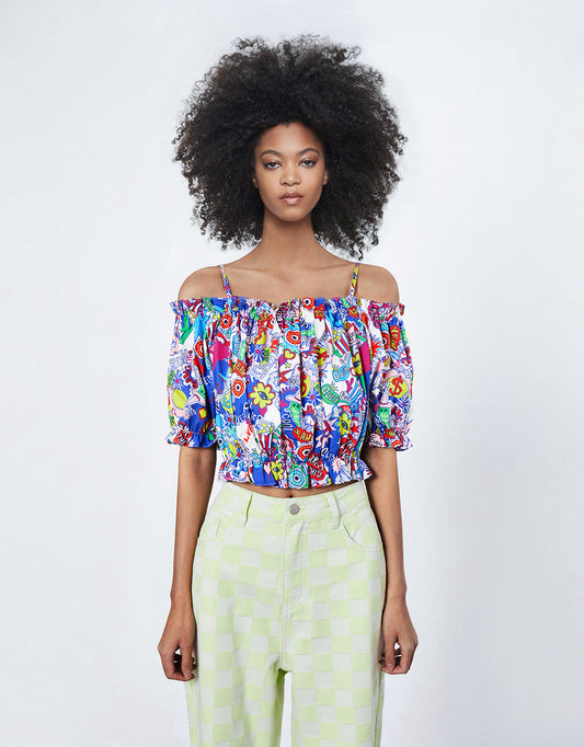 Gray & Brown Hooded Off-Shoulder Blouse & Shorts Set
