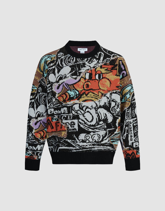 그라데이션 리본 프린트 지퍼 니트 가디건